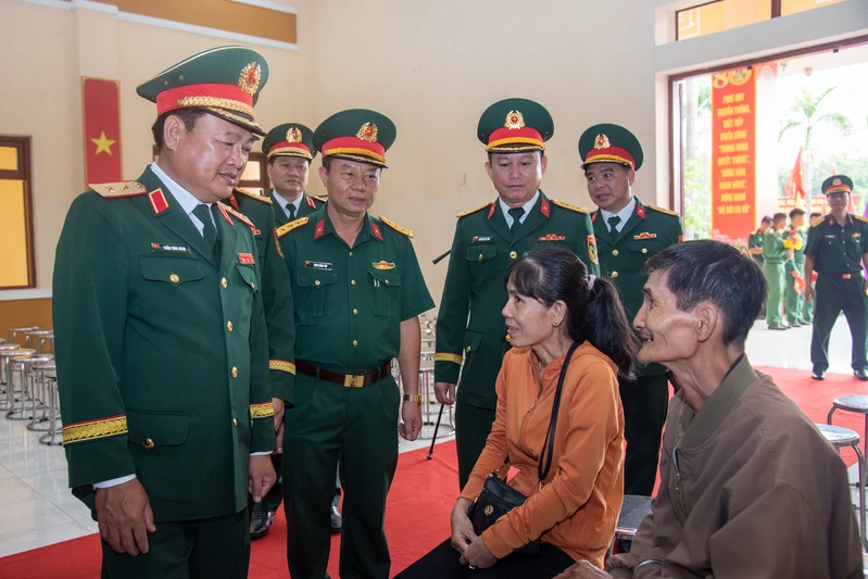 Trung tướng Trần Vinh Ngọc, Bí thư Đảng ủy, Chính ủy Quân khu 7 thăm hỏi người thân của chiến sĩ mới.