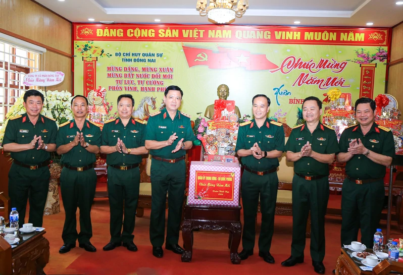 Đồng chí Thứ trưởng Bộ Quốc phòng tặng quà Quân ủy Trung ương, Bộ Quốc phòng chúc Tết Bộ CHQS tỉnh Đồng Nai.