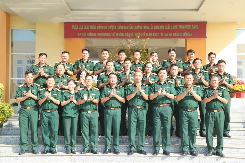 Đoàn công tác Bộ Quốc phòng, Quân khu 7 chụp hình lưu niệm với cán bộ, quân nhân chuyên nghiệp Lữ đoàn 26.