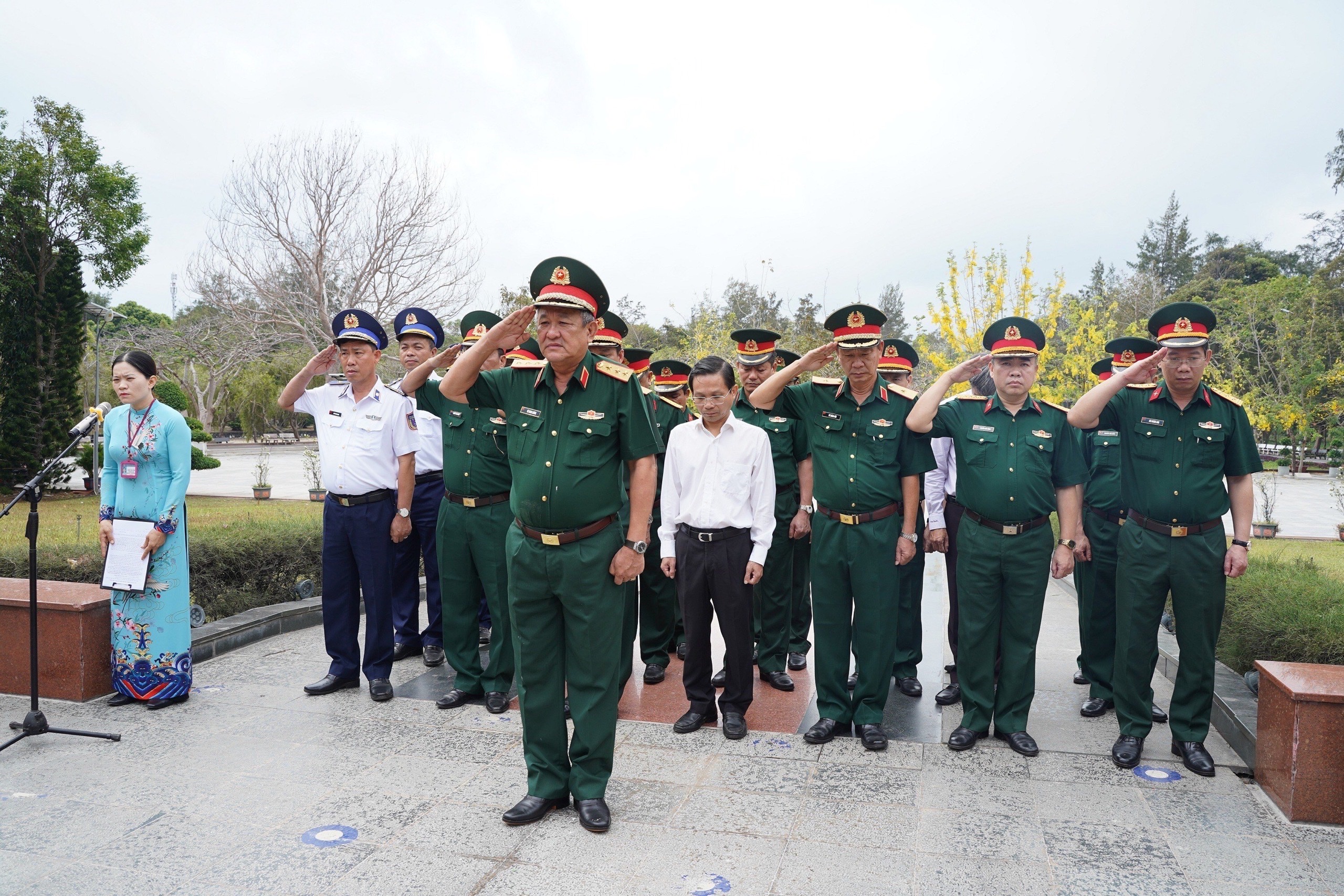 (QK7 Online) - Ngày 13/2 (nhằm ngày 26 tháng Chạp), tại Nghĩa trang Liệt sĩ TPHCM, đoàn đại biểu Thành ủy - HĐND - UBND - Ủy ban MTTQ Việt Nam TPHCM do đồng chí Trần Lưu Quang, Ủy viên Bộ Chính trị, Bí thư Thành ủy TPHCM, làm Trưởng đoàn đã đến viếng và dâng hoa, dâng hương tưởng niệm các Mẹ Việt Nam anh hùng, các Anh hùng liệt sĩ nhân dịp Tết Bính Ngọ 2026. Đoàn Bộ Tư lệnh Quân khu 7 do Đại tá Nguyễn Tấn Linh, Phó Tư lệnh Quân khu làm trưởng đoàn.