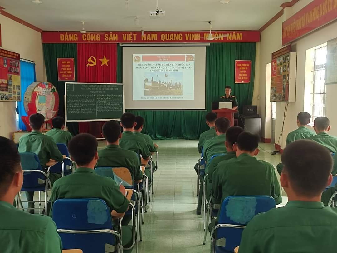 Thượng úy Trần Lê Minh Thông giáo dục chính trị cho chiến sĩ.