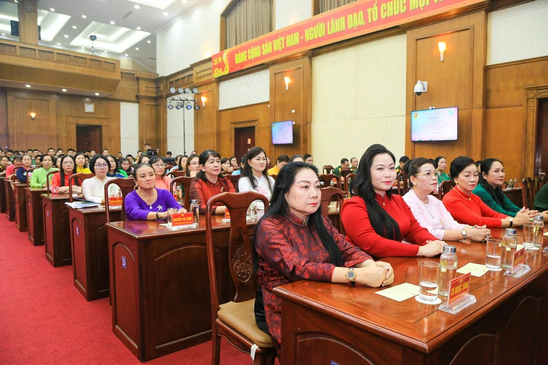 Cán bộ, hội viên phụ nữ các cơ quan, đơn vị trong LLVT Quân khu dự gặp mặt.