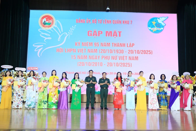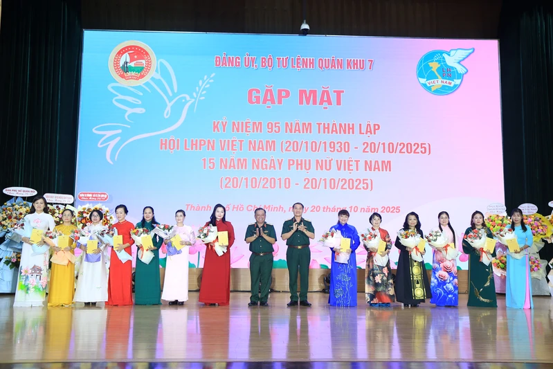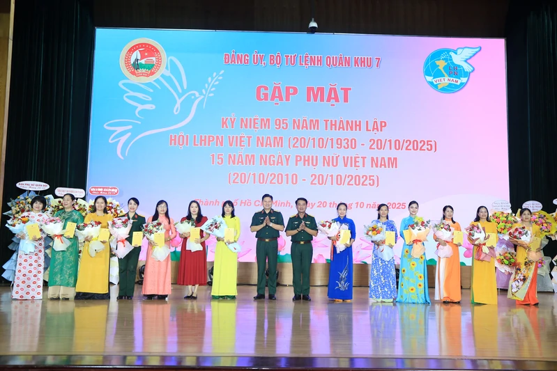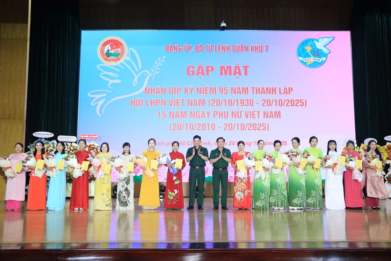 (QK7 Online) - Chiều 20/10, Thường vụ Đảng ủy, Bộ Tư lệnh Quân khu 7 tổ chức gặp mặt kỷ niệm 95 năm Ngày thành lập Hội Liên hiệp Phụ nữ Việt Nam (20/10/1930 - 20/10/2025) và 15 năm Ngày Phụ nữ Việt Nam (20/10/2010 - 20/10/2025).