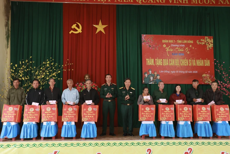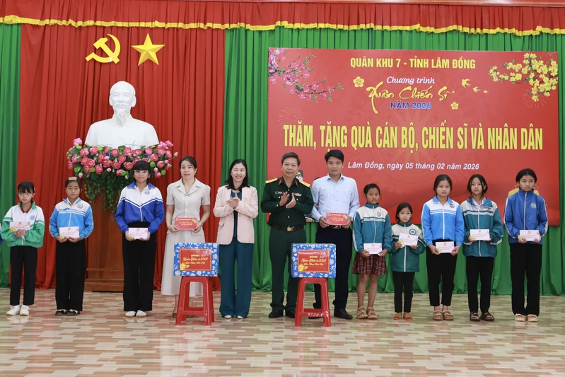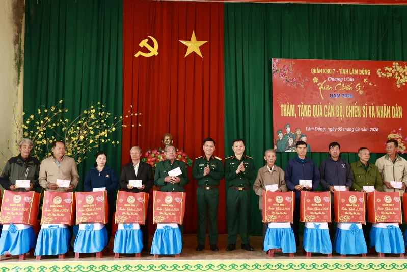 (QK7 Online) – Trong khuôn khổ chương trình “Xuân Chiến sĩ” lần XI năm 2026, sáng ngày 5/2, Thường vụ Đảng uỷ, Bộ Tư lệnh Quân khu 7 và Tỉnh uỷ, HĐND, UBND, UBMTTQVN tỉnh Lâm Đồng tổ chức thăm, tặng quà cho bà con Nhân dân, các đơn vị Quân đội, trường học, các tổ chức tôn giáo, trưởng bon và các gia đình chính sách trên địa bàn xã Thuận Hạnh và xã Tuy Đức.