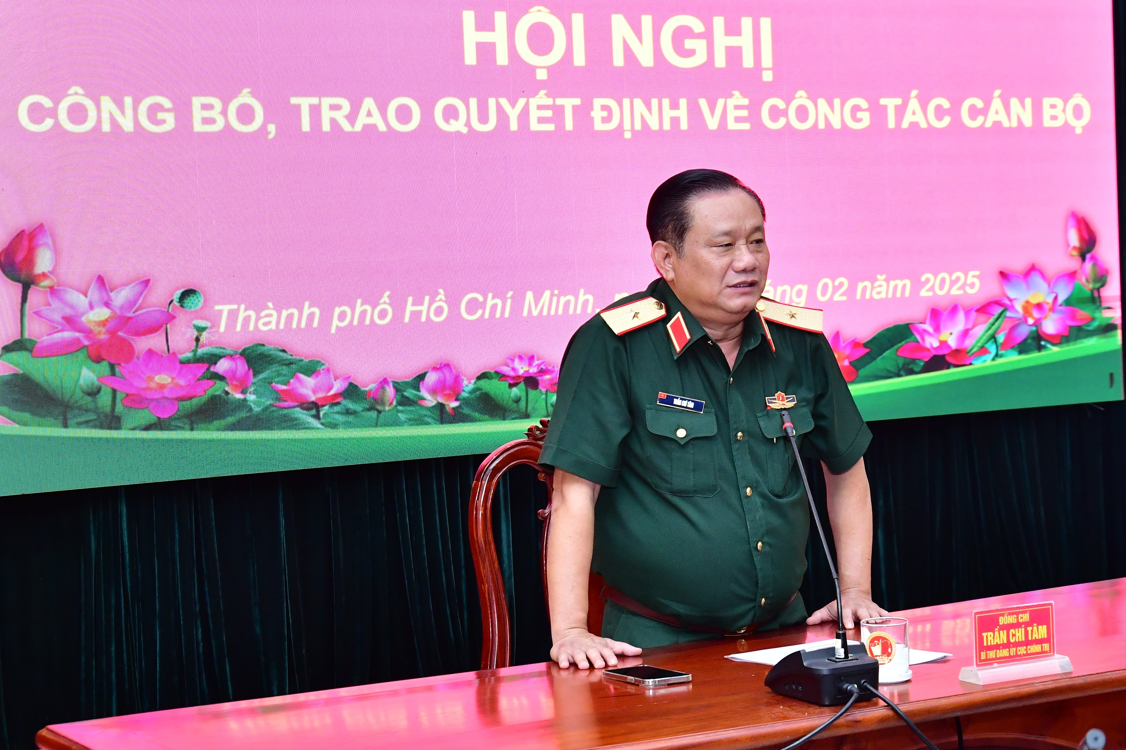 Thay mặt Thường vụ Đảng ủy, Ban Chủ nhiệm Cục Chính trị, Thiếu tướng Trần Chí Tâm, Bí thư Đảng ủy Cục Chính trị, Phó Chủ nhiệm Chính trị Quân khu chúc mừng các đồng chí nhận quyết định trong đợt này, đồng thời yêu cầu các đồng chí sớm bàn giao công việc, trên từng cương vị công tác, tiếp tục giữ vững phẩm chất đạo đức cách mạng, không ngừng phấn đấu, học tập, rèn luyện, nâng cao hơn nữa trình độ chuyên môn nghiệp vụ, chấp hành nghiêm quy định của cơ quan, đơn vị, sẵn sàng nhận và hoàn thành tốt mọi nhiệm vụ được giao.