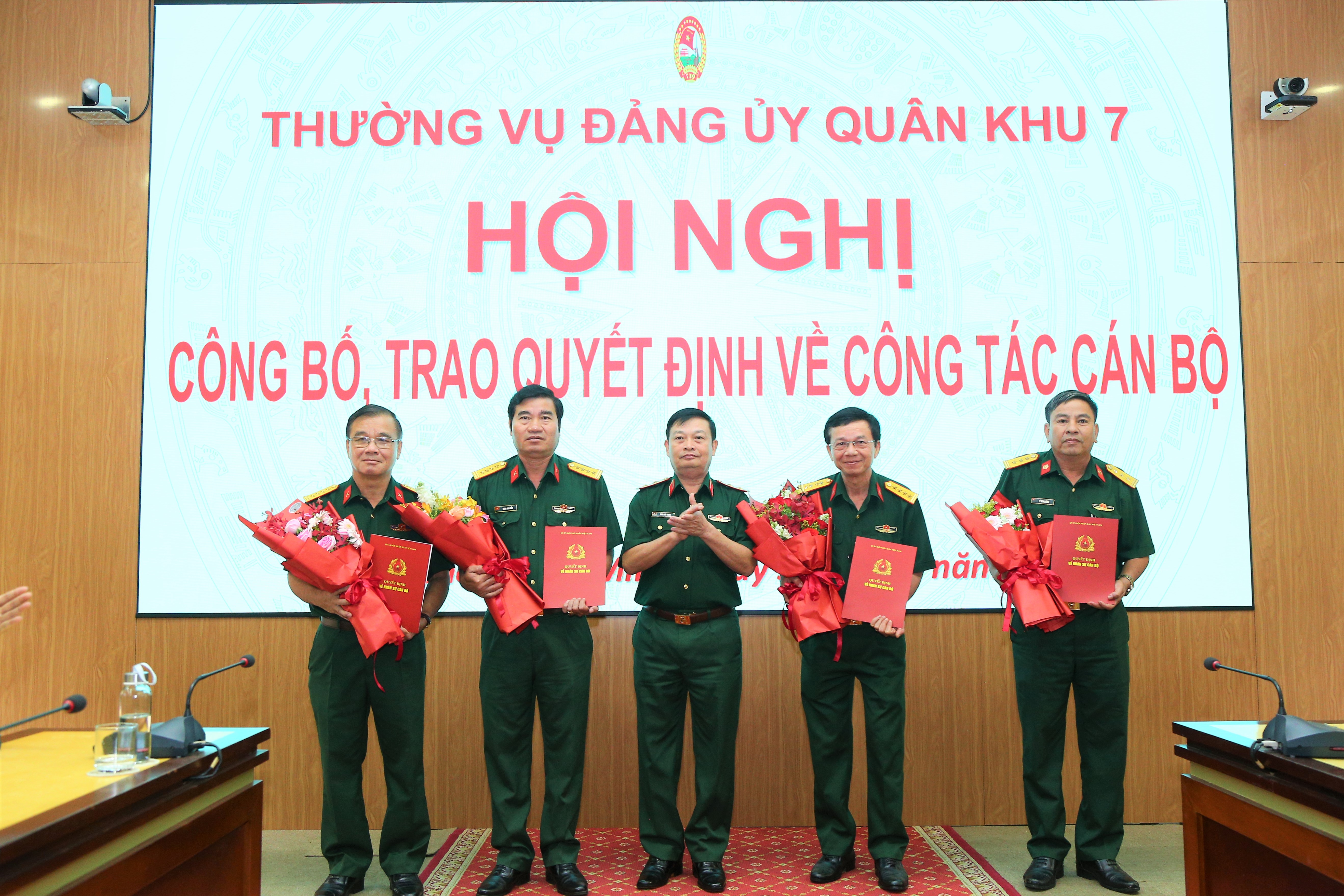 Trung tướng Nguyễn Trường Thắng, Tư lệnh Quân khu trao quyết định của Bộ Quốc phòng; Bộ Tư lệnh Quân khu 7 bổ nhiệm các đồng chí cán bộ.