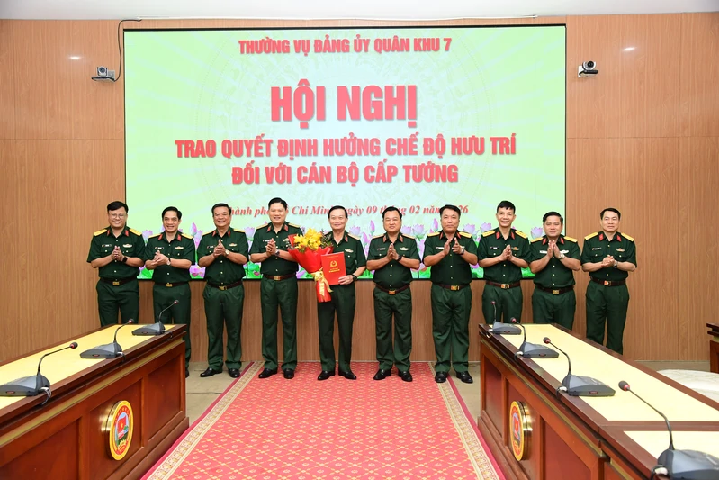 Thường vụ Đảng ủy Quân khu 7 trao quyết định hưởng chế độ bảo hiểm xã hội cho Trung tướng Trần Hoài Trung
