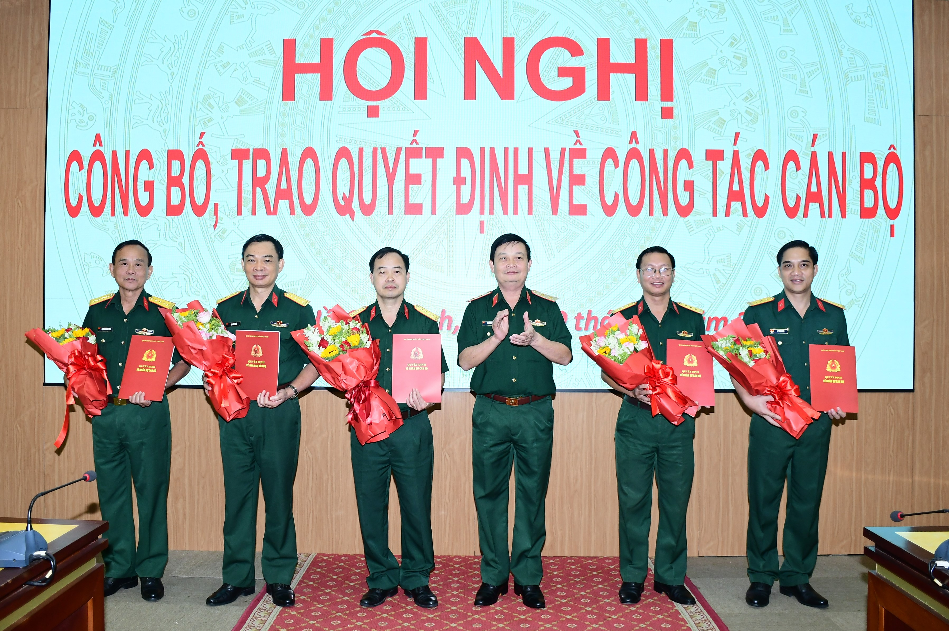 Trung tướng Trần Hoài Trung trao quyết định cho cán bộ.