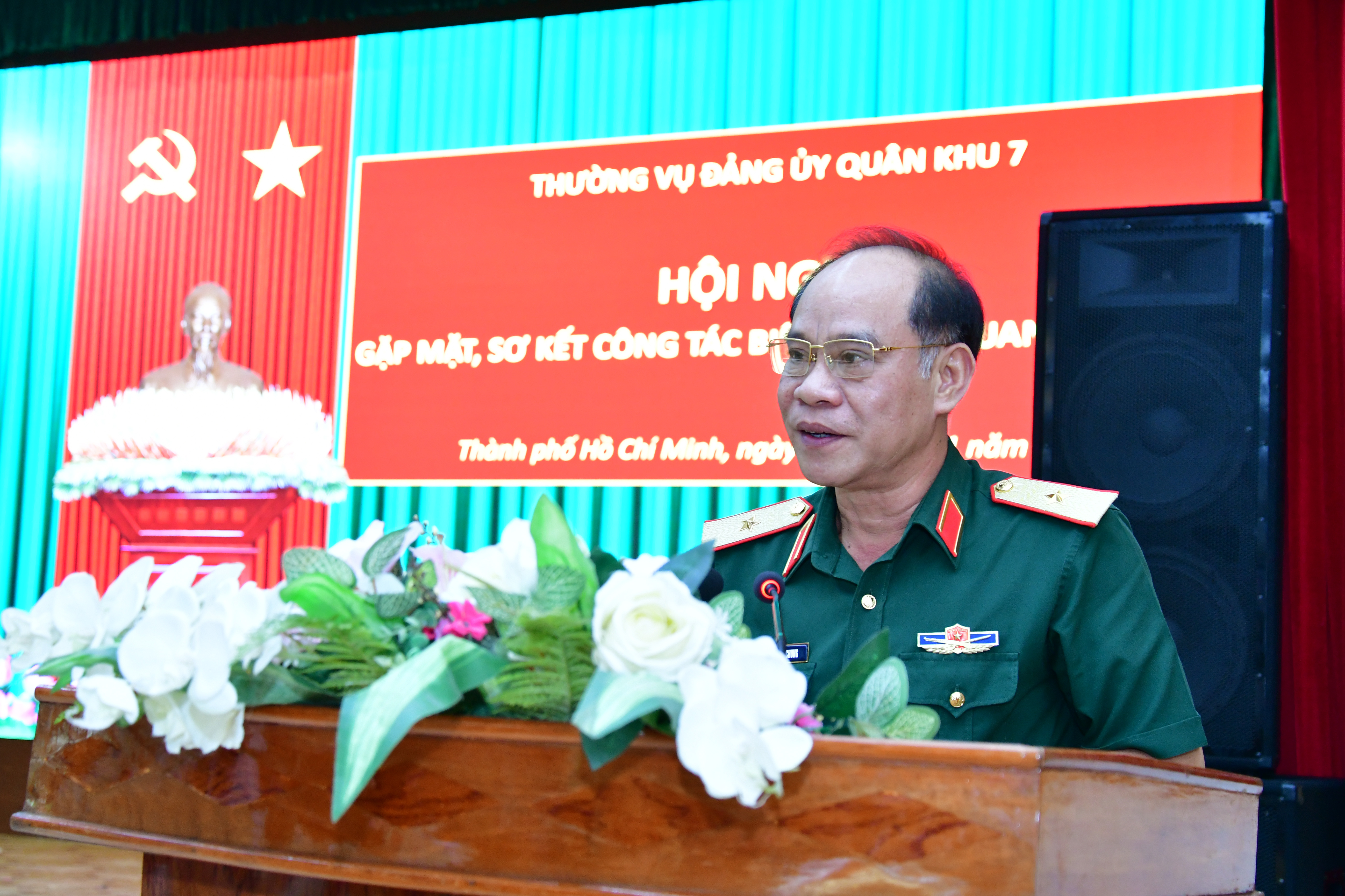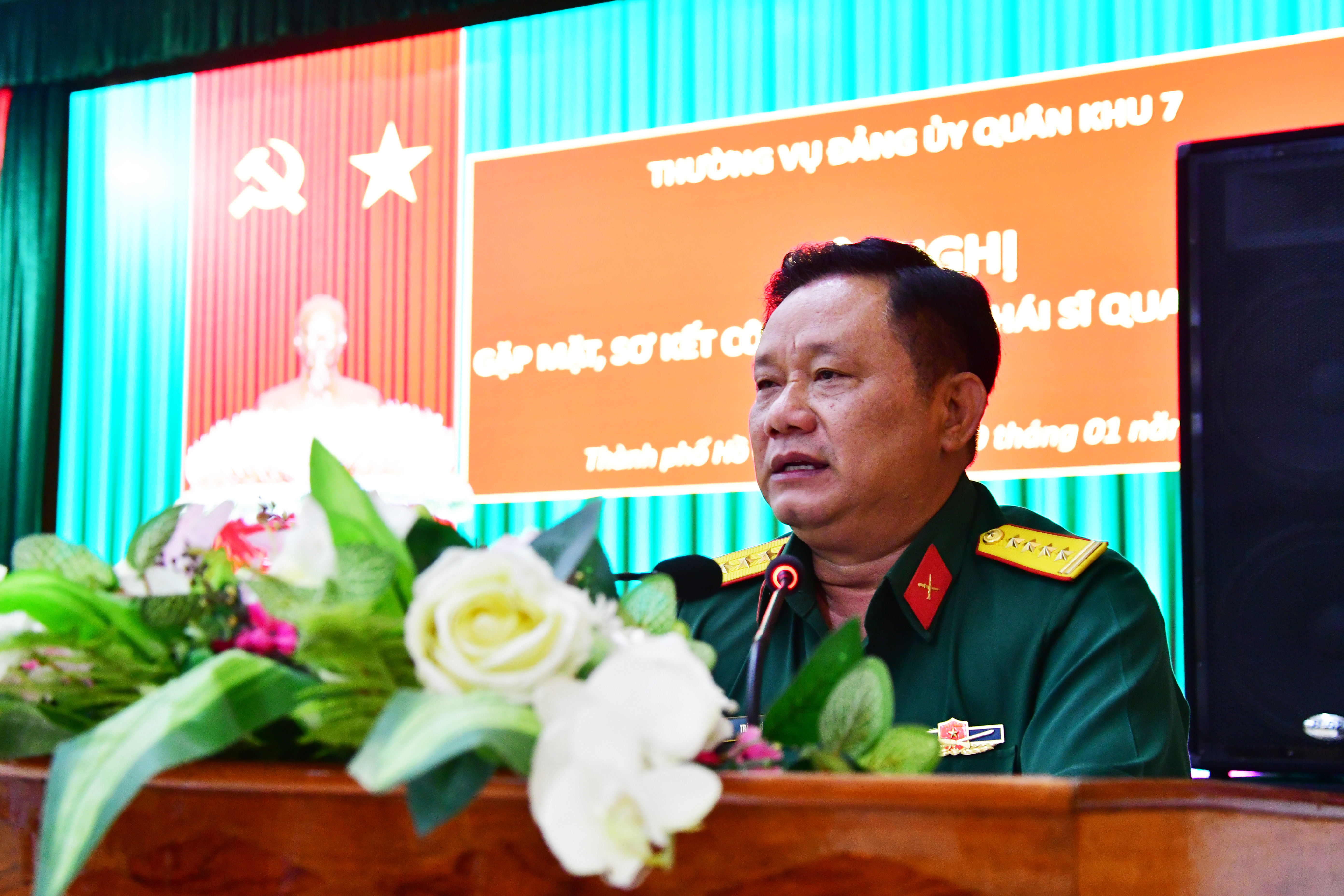 Thiếu tướng Hoàng Đình Chung, Ủy viên Thường vụ Đảng ủy Quân khu 7, Chủ nhiệm Chính trị Quân khu chủ trì hội nghị.