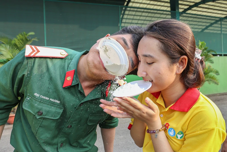 Bộ đội cùng sinh viên tham gia nhiệt tình các trò chơi tập thể.