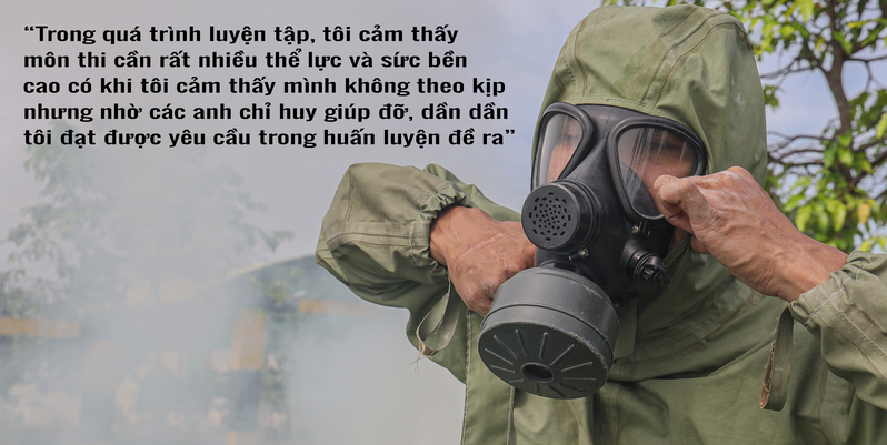 Với đặc thù của bộ đội hóa học, nặng về thể lực, đòi hỏi chuyên môn binh chủng độ chính xác cao. Vượt chướng ngại, bắn súng, tìm kiếm cứu nạn, trinh sát hóa học, khắc phục hậu quả môi trường... mỗi nội dung là một thử thách ý chí, bản lĩnh.