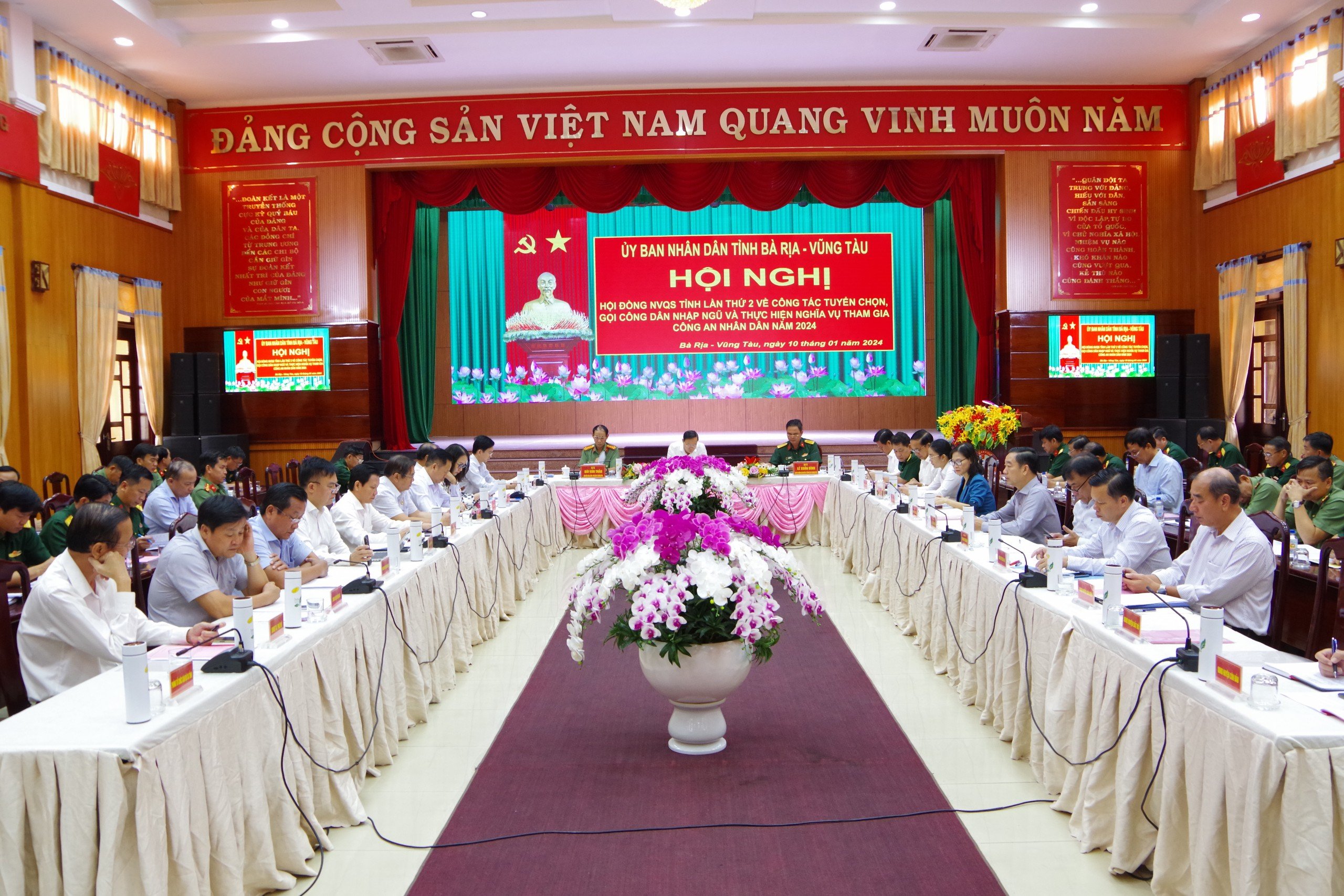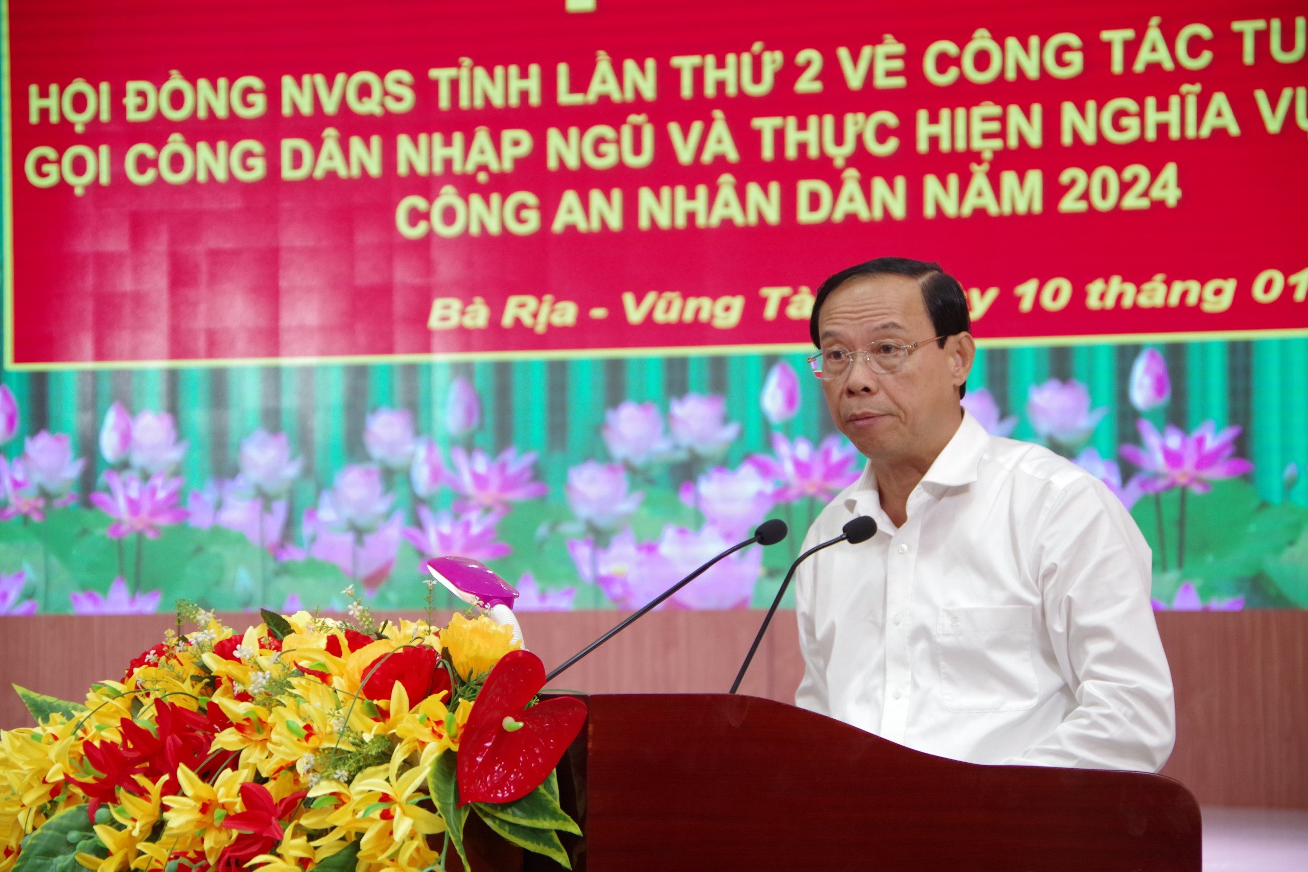 Đồng chí Nguyễn Văn Thọ - Chủ tịch UBND tỉnh, Chủ tịch Hội đồng NVQS tỉnh phát biểu tại hội nghị.