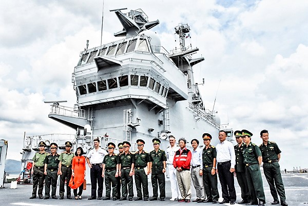 Đoàn lãnh đạo các sở, ngành của tỉnh đến tham quan tàu Dixmude của Hải quân Pháp neo đậu tại Cảng Quốc tế Thị Vải (TX. Phú Mỹ) vào đầu tháng 6-2018.