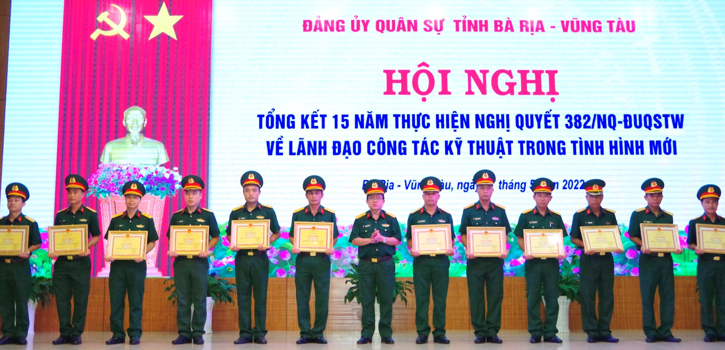 Qua 15 năm thực hiện Nghị quyết 382 của Quân ủy Trung ương về công tác kỹ thuật trong tình hình mới, Đảng bộ, LLVT tỉnh đạt được những kết quả quan trọng. Chủ động tham mưu cho cấp ủy, chính quyền địa phương quan tâm đầu tư mua sắm trang thiết bị, phương tiện kỹ thuật khá đồng bộ. Đến nay, 100% cán bộ quản lý, chỉ huy đã qua đào tạo, gắn bó trách nhiệm xây dựng cơ quan, đơn vị.