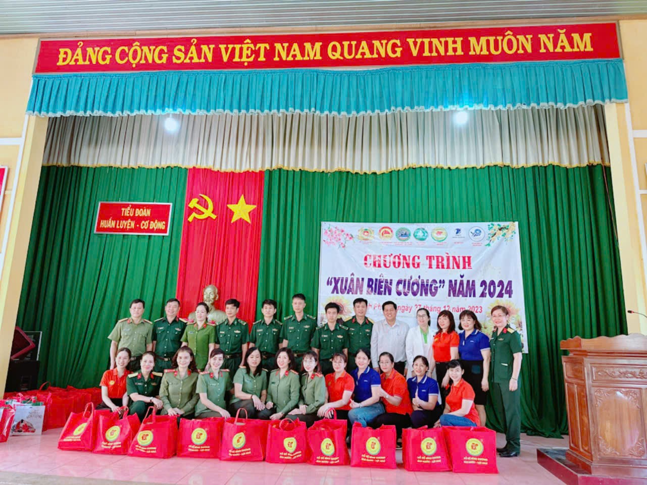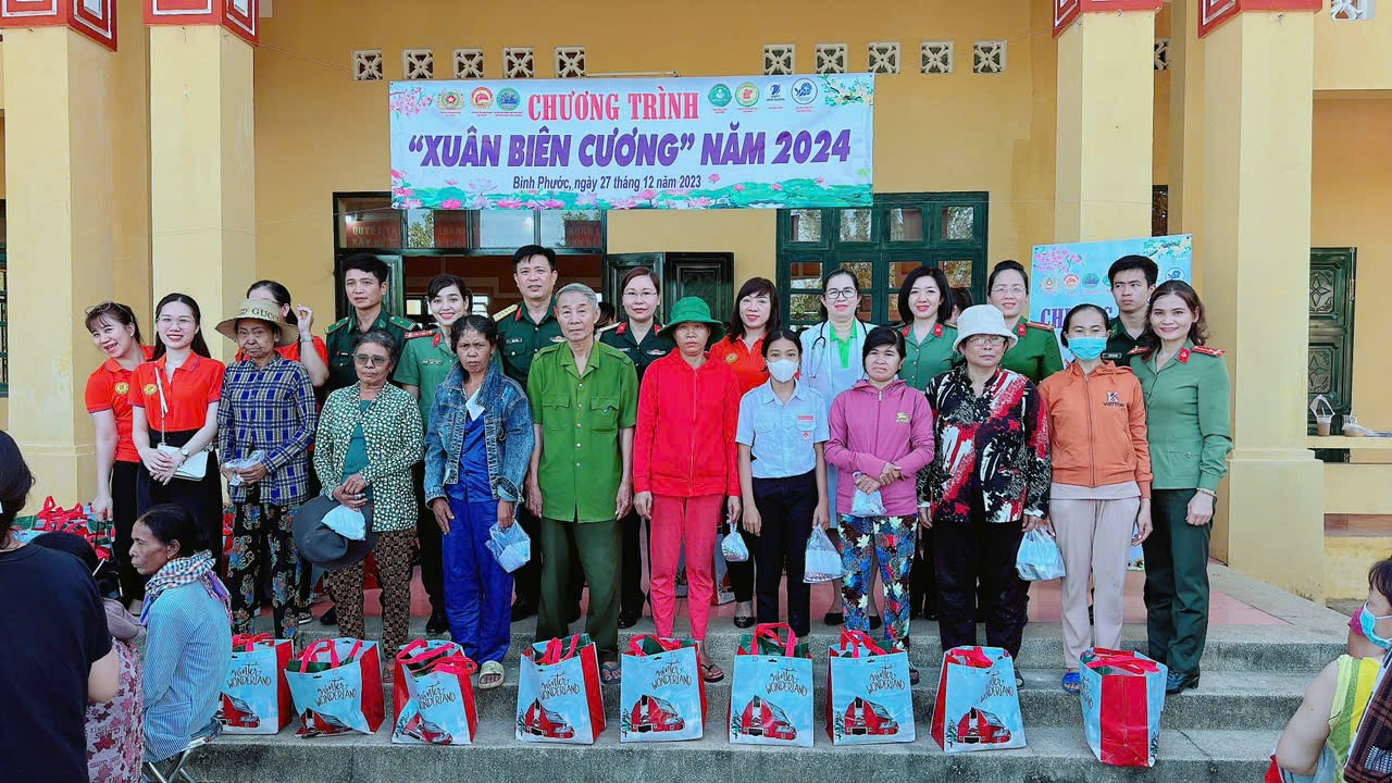 (QK7 Online) - Hội Phụ nữ Cụm thi đua số 3 (gồm Công an tỉnh và Bộ Chỉ huy Quân sự tỉnh) phối hợp với Tiểu đoàn huấn luyện cơ động, Bộ đội Biên phòng tỉnh Bình Phước và các cơ quan, đơn vị đồng hành vừa tổ chức chương trình “Xuân biên cương” năm 2024 trên địa bàn xã Lộc Thịnh, huyện Lộc Ninh, tỉnh Bình Phước.