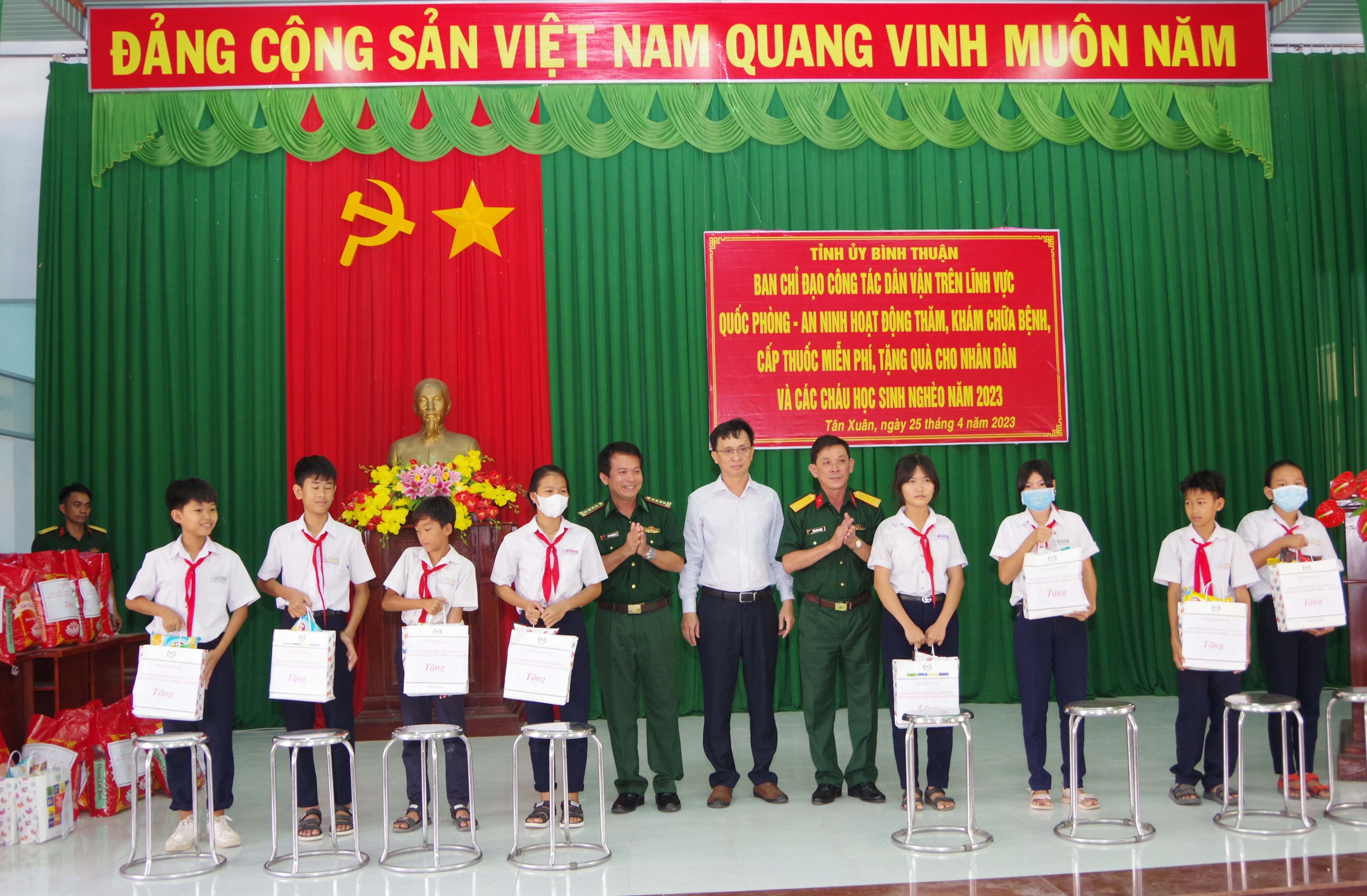 Ngoài ra, Ban chỉ đạo công tác dân vận trên lĩnh vực quốc phòng và an ninh tỉnh còn trao tặng 50 phần quà cho đối tượng chính sách, người già hoàn cảnh khó khăn. Tặng quà 100 em học sinh có hoàn cảnh khó khăn của xã Tân Xuân. Đây là hoạt động tri ân, đền ơn, đáp nghĩa, là hoạt động thiết thực nhằm phát huy tinh thần tương thân tương ái, nêu cao phẩm chất Bộ đội Cụ Hồ luôn vì Nhân dân phục vụ.