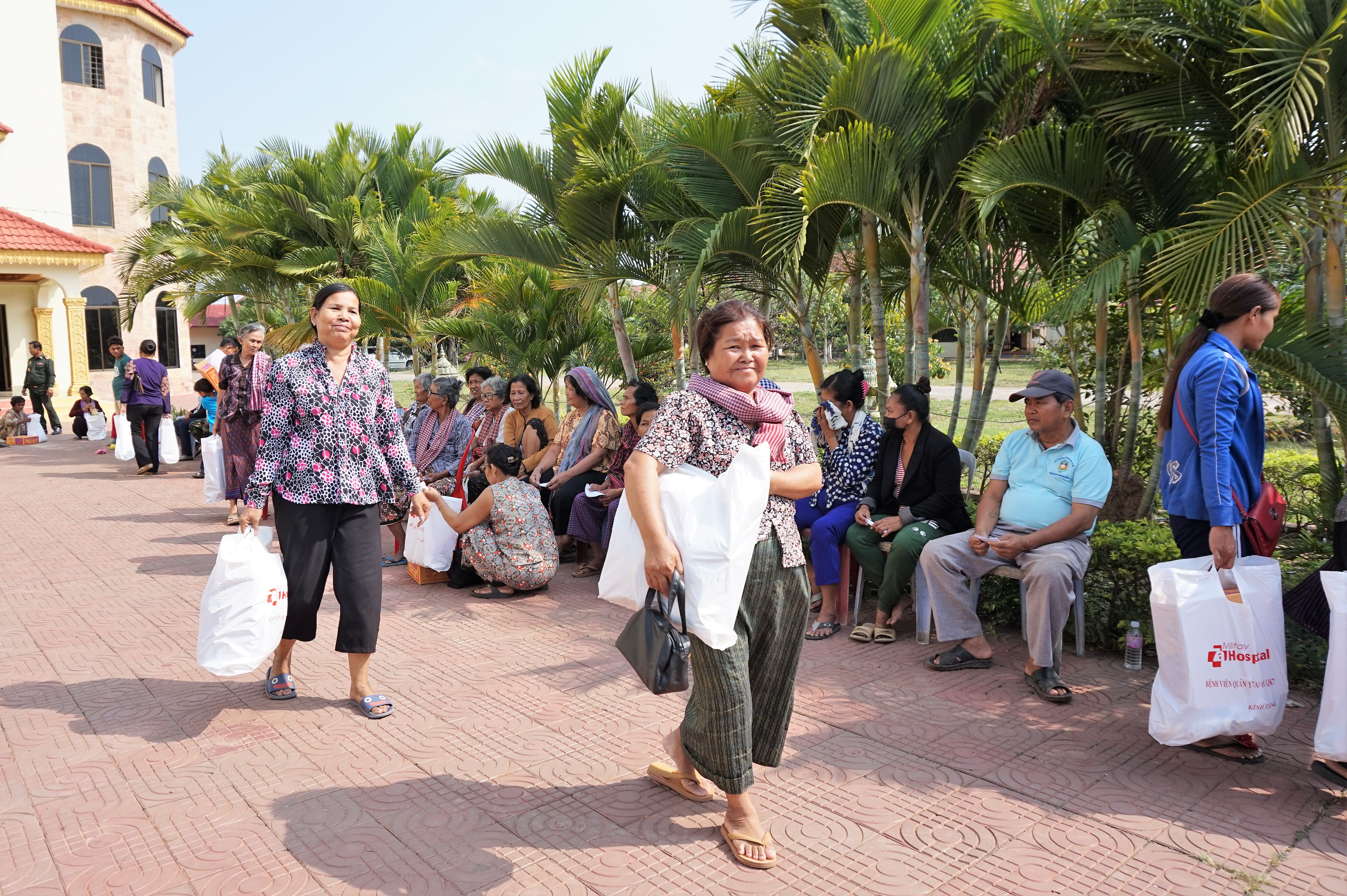 Người dân tỉnh Kampoong Cham sau khi khám bệnh và nhận quà ra về