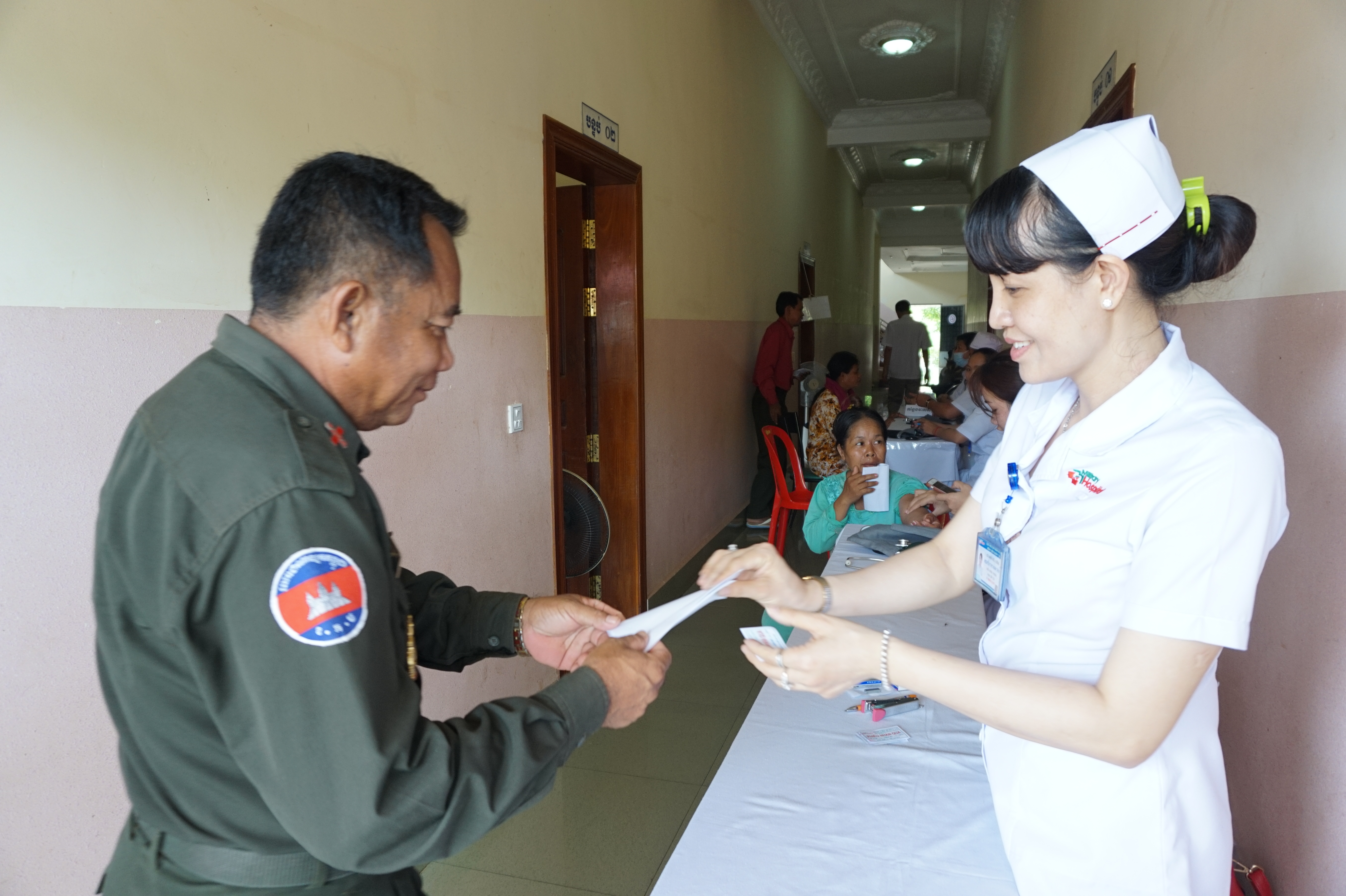 Đoàn y bác sĩ Bệnh viện quân y 7A, vượt qua quãng đường hàng trăm km đã đến Bệnh viện Quân khu 2, quân đội Hoàng gia Campuchia trong sự chào đón nhiệt tình của Bộ Tư lệnh Quân khu 2, lãnh đạo địa phương và nhân dân nước bạn. Ngay sau khi đoàn tới Bệnh viện Quân khu 2, các thành viên trong đoàn tiến hành vận chuyển trang thiết bị dụng cụ y tế, thuốc men và quà tặng cho người dân. Triển khai ngay 01 bàn tiếp đón; 01 bàn đo mạch, huyết áp; 05 bàn khám nội tổng quát; 01 bàn đo điện tim; 01 bàn phát thuốc và 01 bàn phát quà.