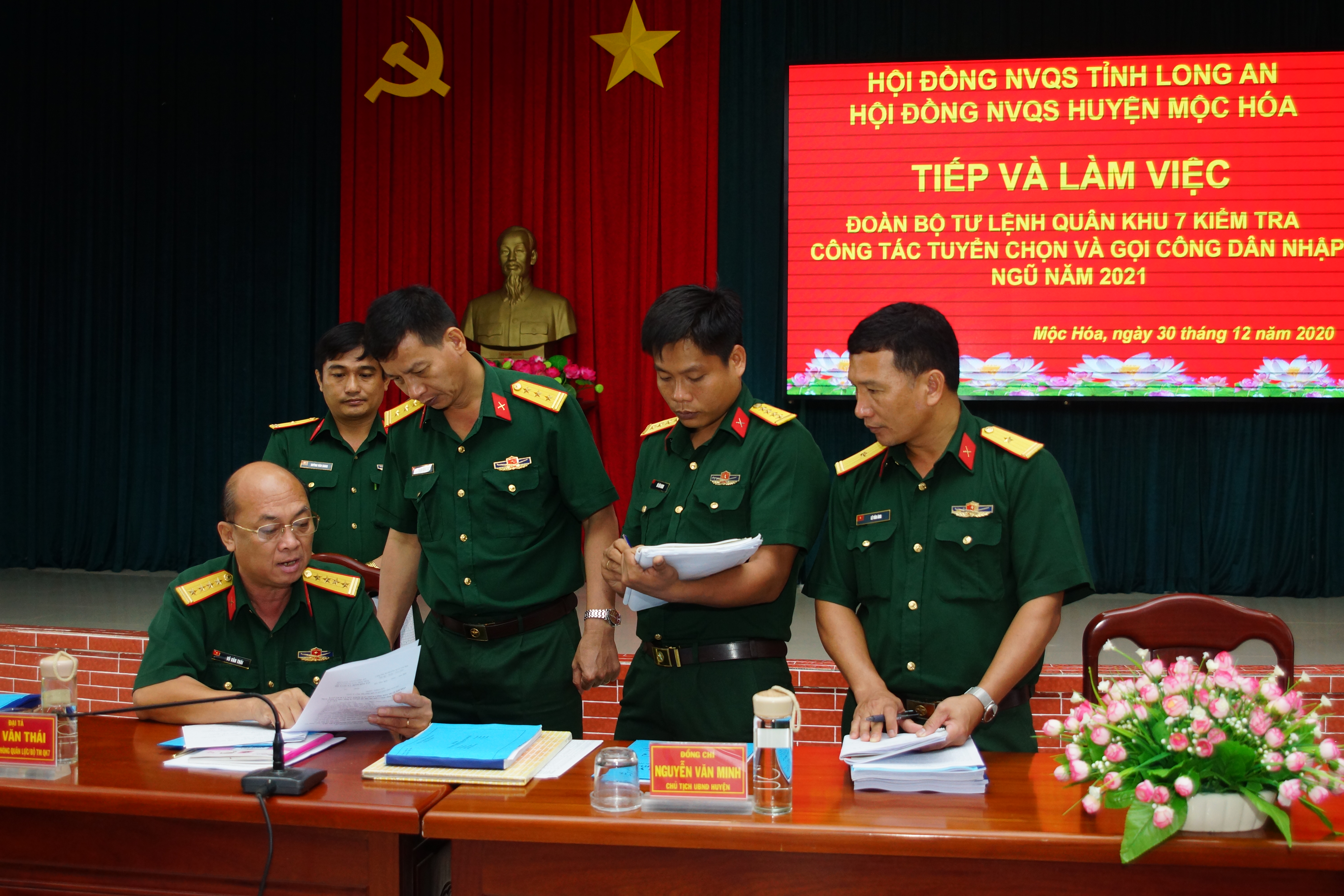 Đoàn công tác Quân khu 7 kiểm tra công tác tuyển chọn và gọi công dân nhập ngũ năm 2021 Hội đồng nghĩa vụ quân sự huyện Mộc Hóa, tỉnh Long An
