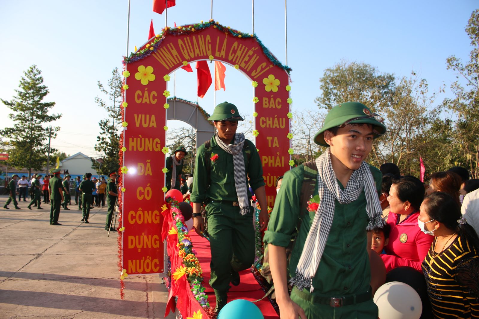 Thanh niên huyện Tân Hưng, tỉnh Long An hăng hái lên đường nhập ngũ năm 2020 Ảnh: Văn Đát