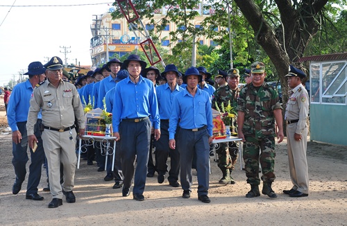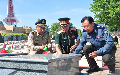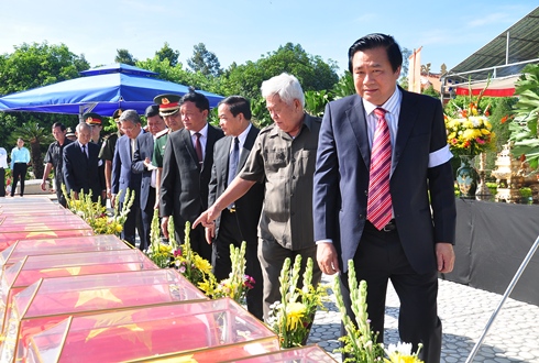 Thủ trưởng Bộ Tư lệnh Quân khu 7, lãnh đạo tỉnh Long An, Bộ CHQS tỉnh và các đơn vị Quân đội Hoàng gia Campuchia thành kính tiễn đưa các liệt sĩ yên nghỉ bên đồng đội.