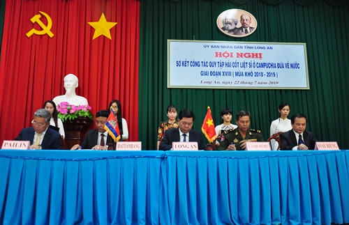 Tại hội nghị, đại diện lãnh đạo tỉnh Long An đã ký kết biên bản thỏa thuận thực hiện nhiệm vụ tìm kiếm, qui tập hài cốt liệt sĩ Quân tình nguyện Việt Nam hi sinh ở Campuchia đưa về nước giai đoạn XIX (mùa khô 2019 - 2020).