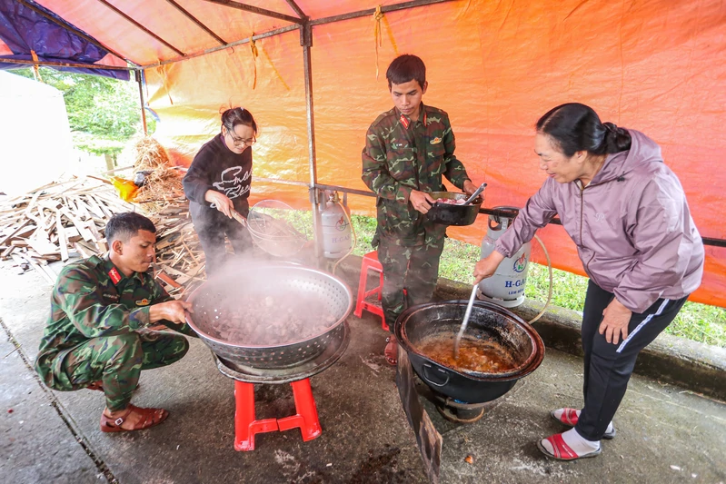 Hội Phụ nữ xã D'Ran cùng bộ đội nấu ăn.