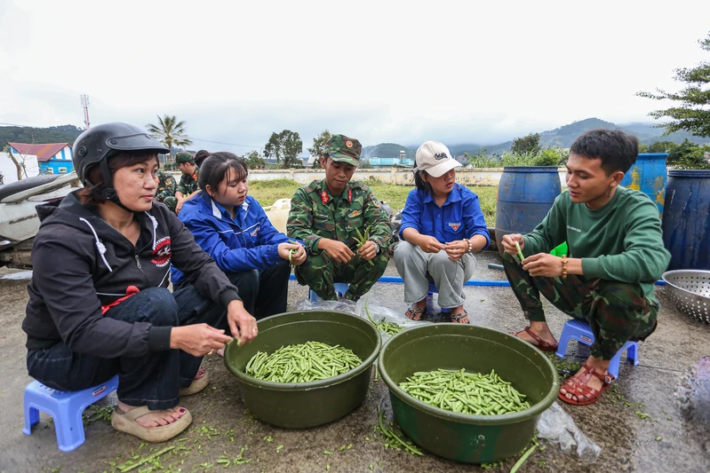 Bà Mai Thị Thu Hà, thôn Lạc Xuân 2, xã D’Ran, tỉnh Lâm Đồng tâm sự: "Ở địa phương mình có gì thì mình mang ra cái đó, đậu ve, cà chua, bắp sú, ớt…hỗ trợ bộ đội, đây là tình cảm của bà con cảm ơn bộ đội đã đến giúp dân tận tình. Mong muốn các chiến sĩ có thêm nhiều sức khỏe để phụ giúp cho dân".