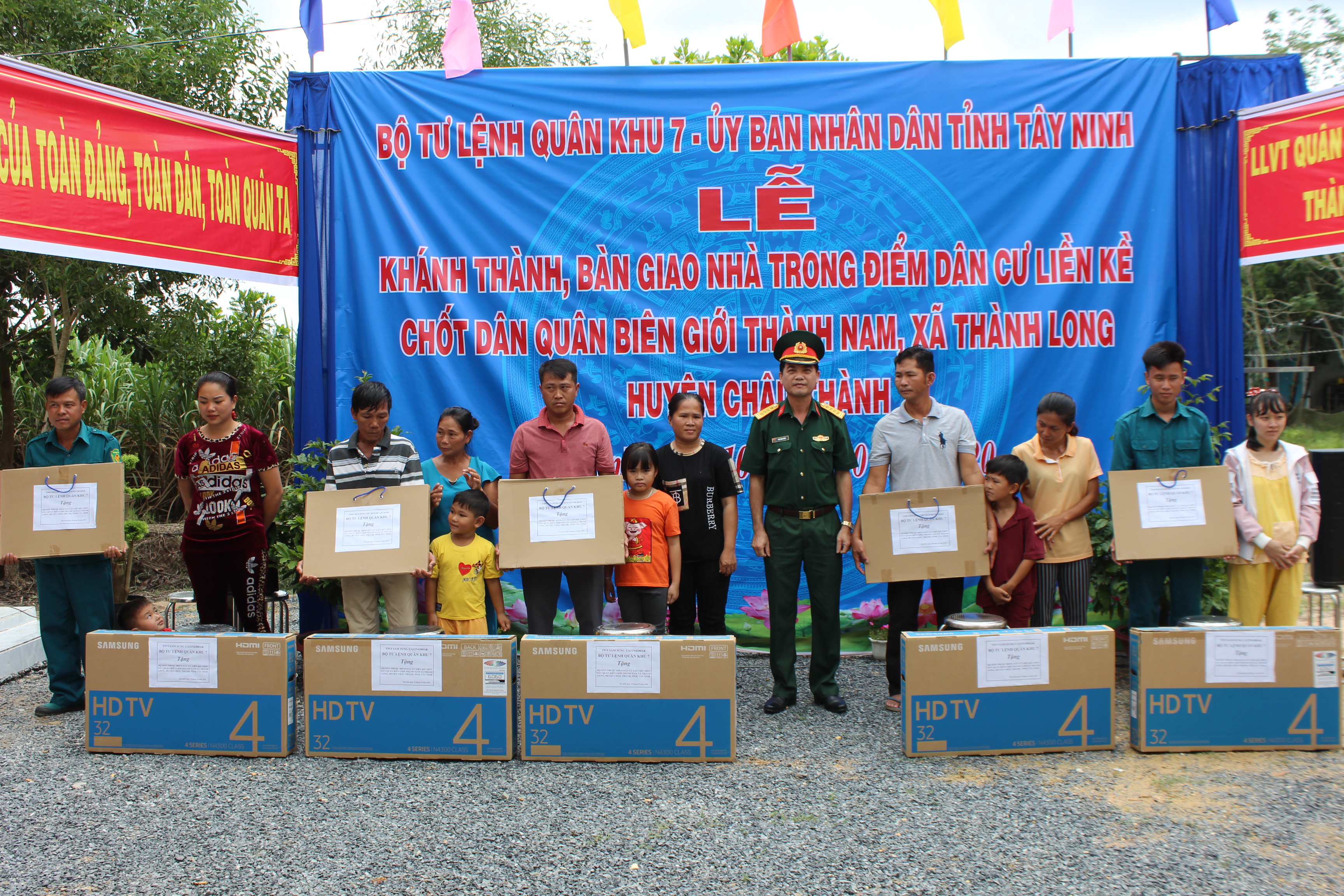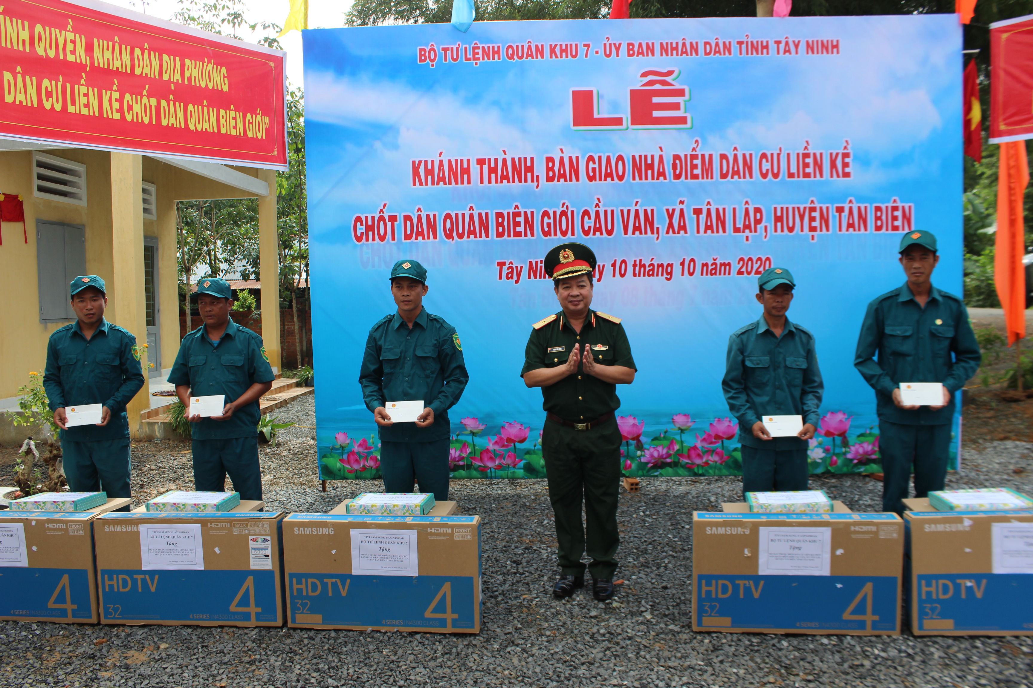 Tại buổi lễ, lãnh đạo cấp ủy, chính quyền địa phương đã trao quyền sở hữu nhà cho các hộ gia đình; Bộ Tư lệnh Quân khu 7 và Ủy ban Nhân dân tỉnh Tây Ninh tặng mỗi gia đình 1 con bò sinh sản; Bộ Tư lệnh TP. HCM, Bộ CHQS tỉnh Tây Ninh cùng lãnh đạo địa phương tặng các hộ gia đình nhiều trang thiết bị, vật dụng gia đình và tiền mặt để bà con có điều kiện phát triển kinh tế, sinh sống lâu dài trên biên giới với tổng kinh phí hơn 4 tỷ đồng.