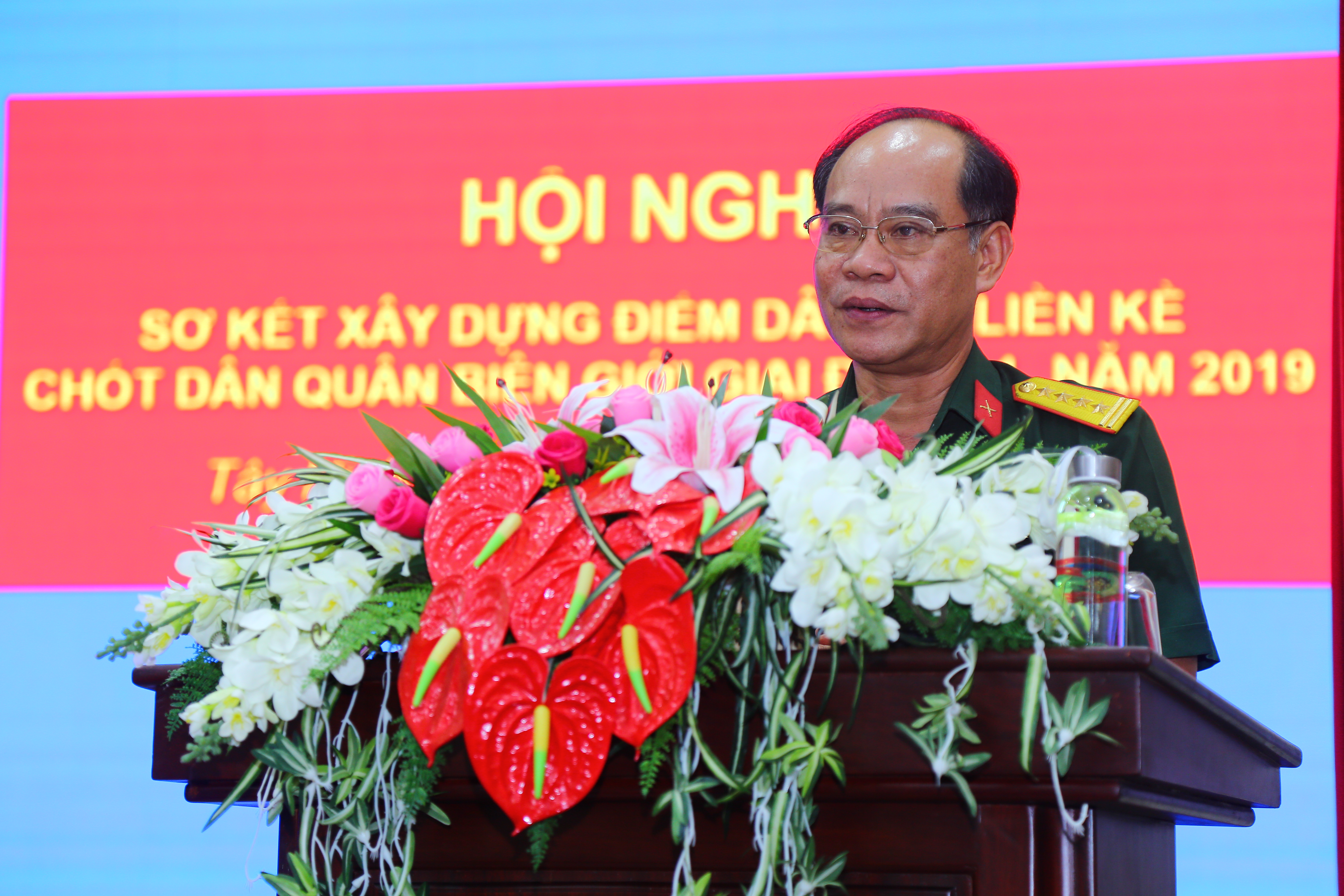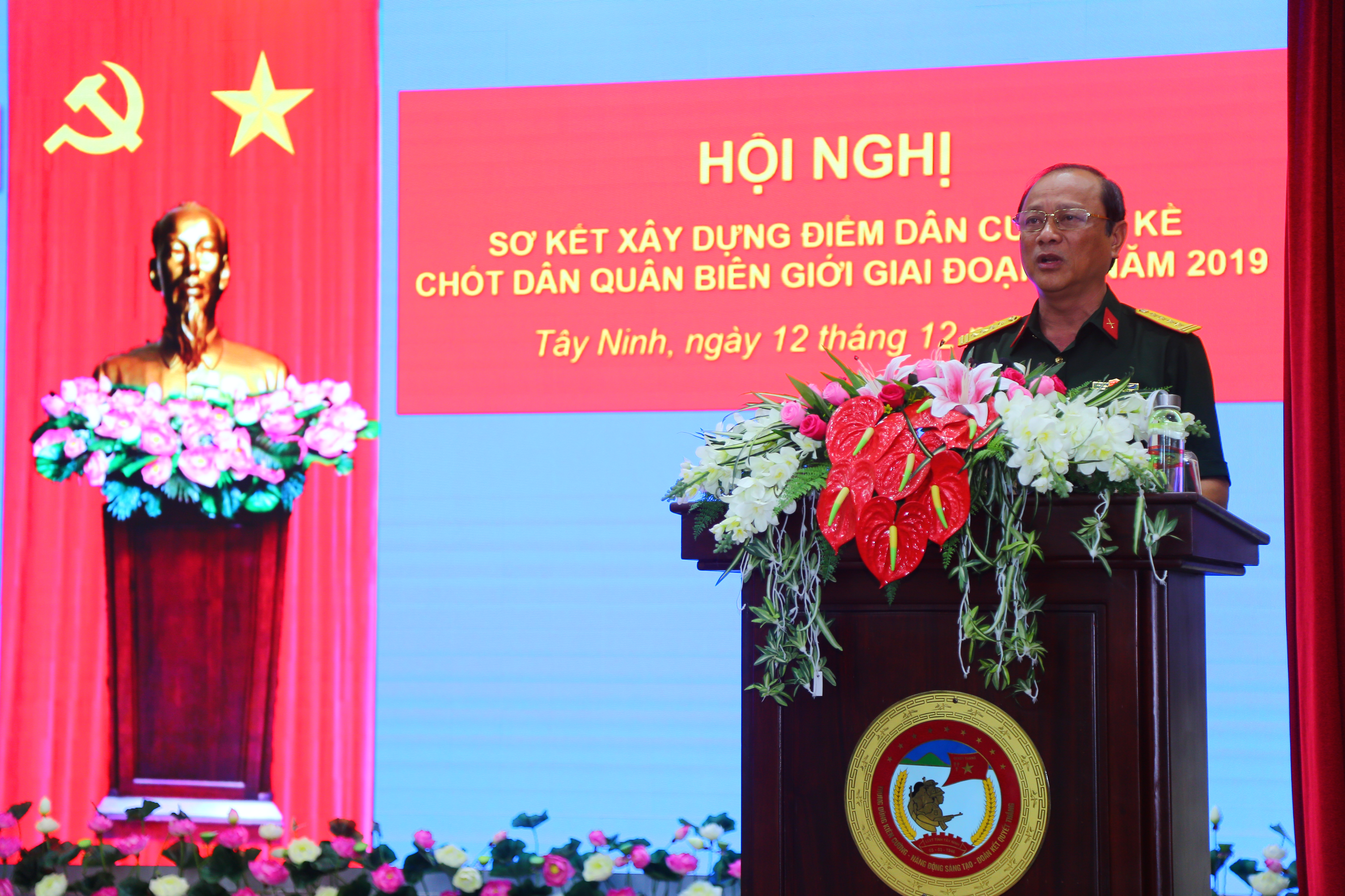 (QK7 Online) - Chiều 12/12, UBND tỉnh Tây Ninh tổ chức hội nghị sơ kết xây dựng Điểm dân cư liền kề Chốt Dân quân biên giới trên địa bàn tỉnh giai đoạn 1 năm 2019. Đại tá Hoàng Đình Chung – Phó Chủ nhiệm Chính trị Quân khu 7, Thường trực Ban Chỉ đạo đến dự. Đồng chí Dương Văn Thắng – Phó Chủ tịch UBND tỉnh, Trưởng Ban Chỉ đạo tỉnh chủ trì hội nghị.