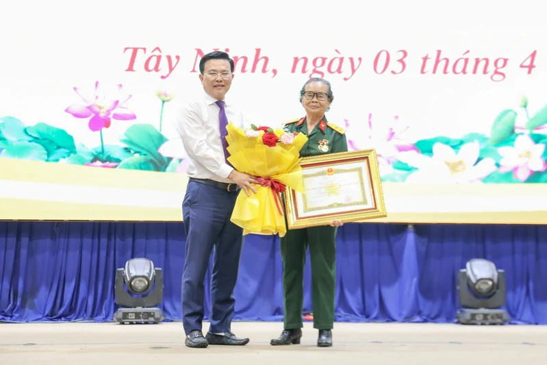 Theo đó, đồng chí Phan Thị Út (Út Nghét), nguyên Đội trưởng Đội Biệt động mật xã An Tịnh, huyện Trảng Bàng, tỉnh Tây Ninh (nay là phường An Tịnh, tỉnh Tây Ninh) được phong tặng danh hiệu Anh hùng lực lượng vũ trang Nhân dân vì đã có thành tích đặc biệt xuất sắc trong cuộc kháng chiến chống đế quốc Mỹ cứu nước; bà Trần Thị Lành, xã Tân Lân, tỉnh Tây Ninh được phong tặng danh hiệu “Nghệ nhân ưu tú” vì đã có nhiều cống hiến trong gìn giữ và phát huy giá trị di sản văn hóa của dân tộc trong lĩnh vực nghề thủ công mỹ nghệ; Đảng bộ, chính quyền và Nhân dân tỉnh Tây Ninh được tặng thưởng Huân chương Lao động hạng Ba vì đã có thành tích xuất sắc trong thực hiện Nghị quyết số 18-NQ/TW ngày 25/10/2017 cùa Ban Chấp hành Trung ương Đảng khóa XII; nhiều cá nhân được tặng thưởng danh hiệu các cấp.