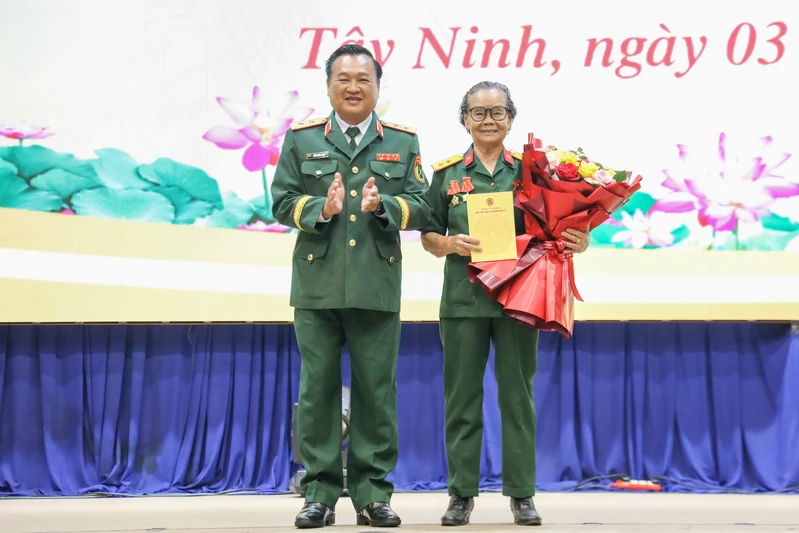 (QK7 Online) - Chiều ngày 3/4, tỉnh Tây Ninh tổ chức lễ phong tặng danh hiệu Anh hùng lực lượng vũ trang Nhân dân, Nghệ nhân Ưu tú và các hình thức khen thưởng cấp Nhà nước cho tập thể và các cá nhân nhằm tôn vinh, ghi nhận những đóng góp to lớn của các tập thể, cá nhân tiêu biểu. Dự buổi lễ có các đồng chí: Nguyễn Thanh Ngọc, Thứ trưởng Bộ Tư pháp; Trung tướng Trần Vinh Ngọc, Bí thư Đảng ủy, Chính ủy Quân khu 7; Lê Văn Hẳn, Phó Bí thư Tỉnh ủy, Chủ tịch UBND tỉnh Tây Ninh; Nguyễn Thanh Hải, Phó Bí thư Tỉnh ủy, Chủ tịch Ủy ban MTTQ Việt Nam tỉnh Tây Ninh; các đồng chí trong Thường vụ Tỉnh ủy, UBND tỉnh Tây Ninh; lãnh đạo tỉnh Tây Ninh qua các thời kỳ.