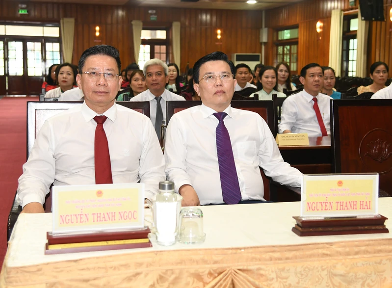 Các đồng chí: Nguyễn Thanh Ngọc, Thứ trưởng Bộ Tư pháp; Nguyễn Thanh Hải, Phó Bí thư Tỉnh ủy, Chủ tịch UBMTTQVN tỉnh Tây Ninh dự buổi lễ.