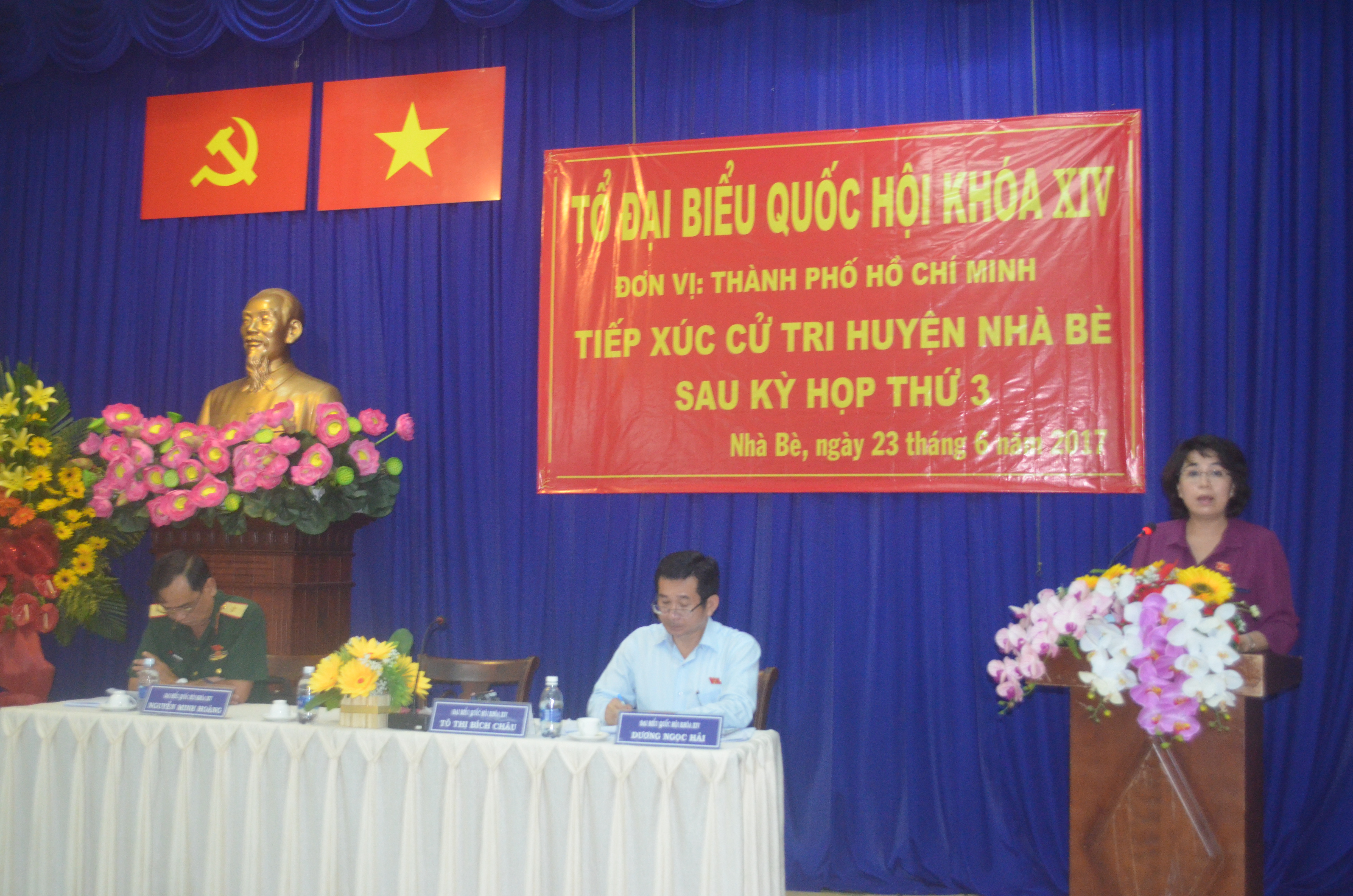 báo cáo kết quả kì họp thứ 3 Quốc hội khoá XIV với các cử tri tại huyện Nhà Bè.