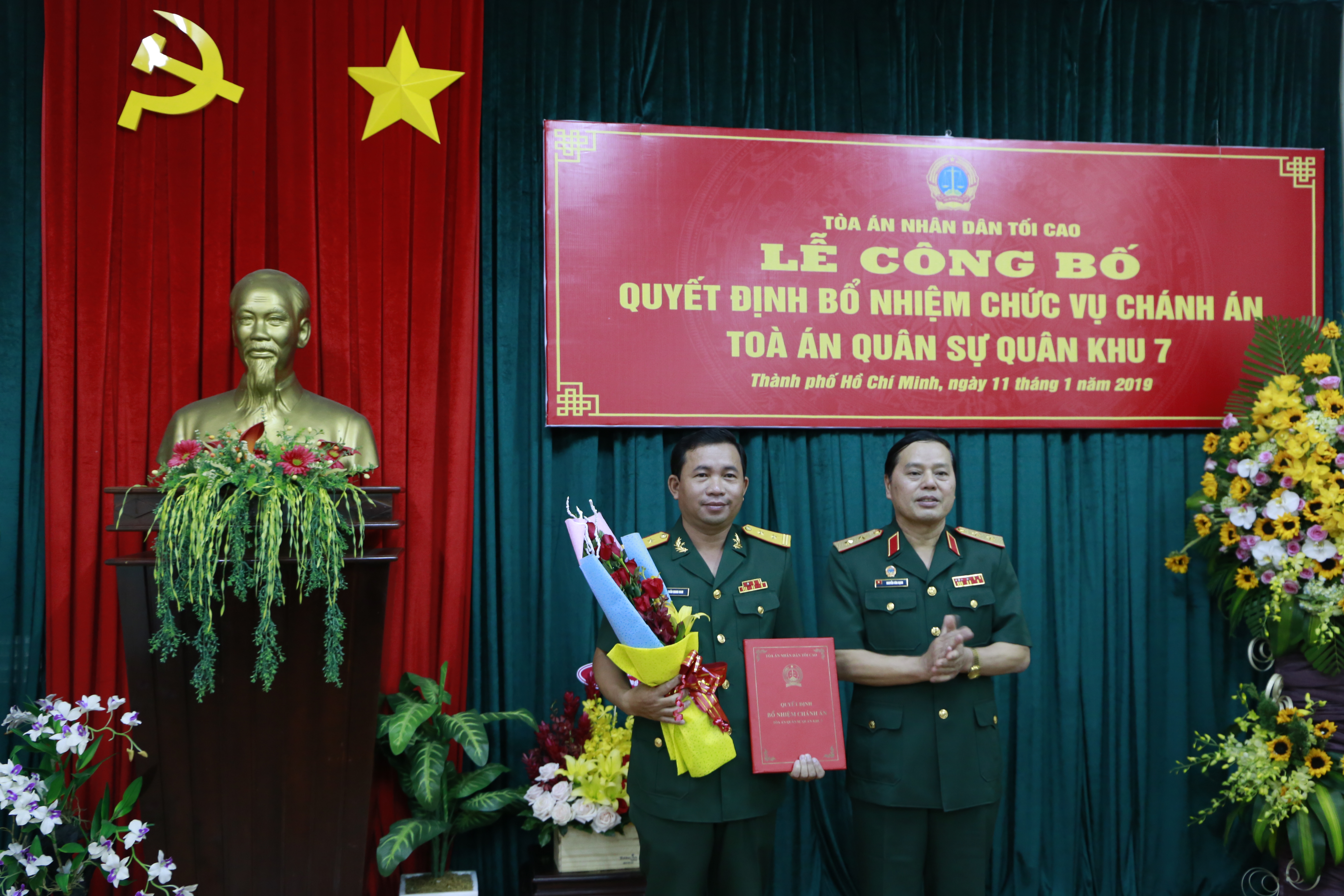 Theo đó, Trung tá Trần Nam Giang (sinh năm 1973, thẩm phán trung cấp), Chánh án Tòa án Quân sự khu vực 2, Quân khu 7 được bổ nhiệm giữ chức vụ Chánh án Tòa án Quân sự Quân khu 7 kể từ ngày 15-1, thay cho Đại tá Cao Sơn Hà nghỉ hưu theo chế độ.