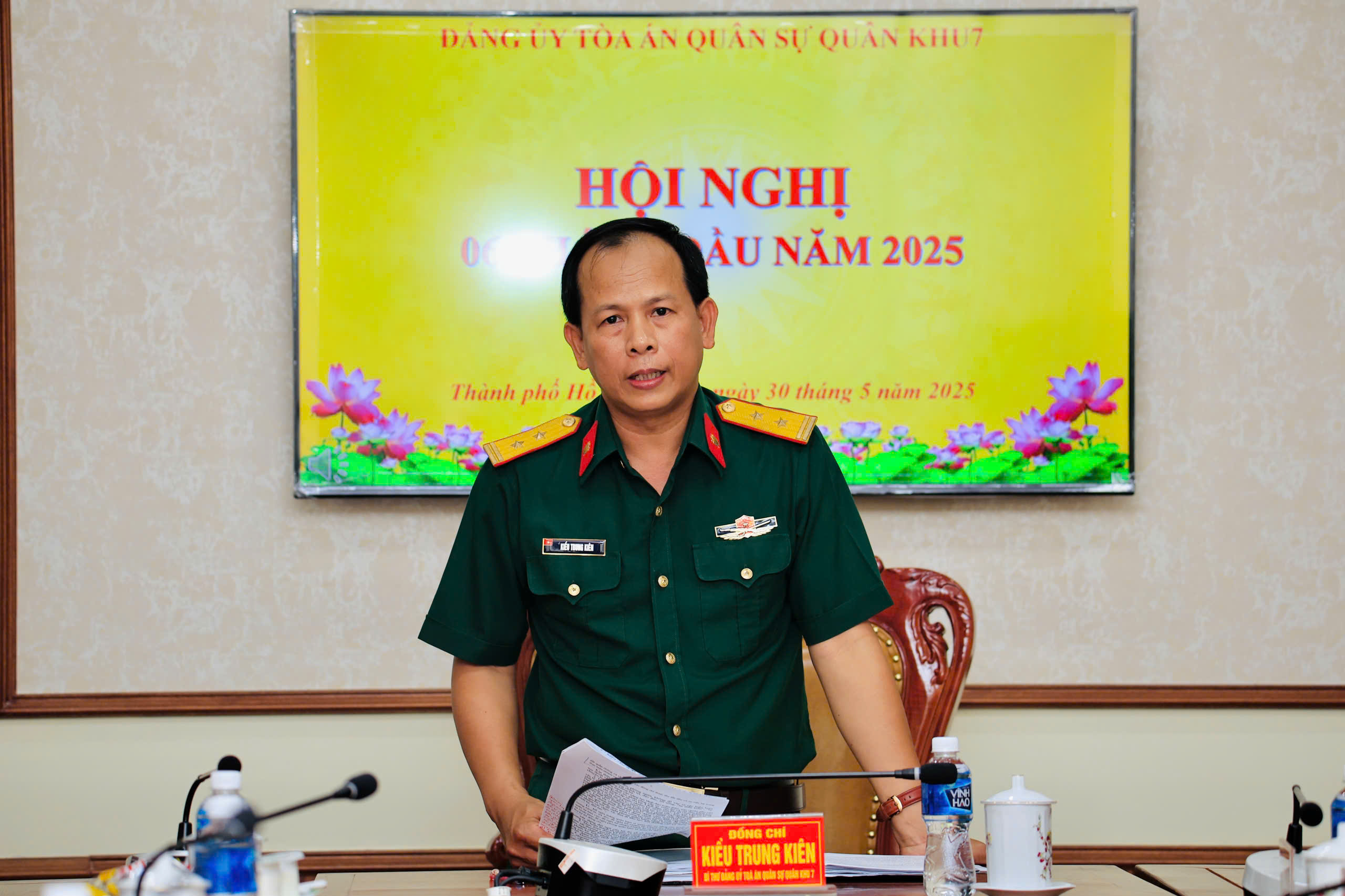 Báo cáo tại hội nghị, trong 6 tháng đầu năm 2025, Đảng ủy Tòa án Quân sự Quân khu 7 đã quán triệt sâu sắc nghị quyết, chỉ thị của cấp trên, tập trung lãnh đạo các Tòa án Quân sự hoàn thành tốt nhiệm vụ. Công tác thụ lý, giải quyết án được thực hiện đúng quy định của pháp luật và các quy định, quy chế của ngành. 100% các vụ án được xét xử bảo đảm đúng người đúng tội, đúng pháp luật, không có án oan, không bỏ lọt tội phạm, không có án hủy, không có án sửa do lỗi chủ quan. Xét xử các vụ án bảo đảm nghiêm minh, công bằng, nhân văn, đáp ứng yêu cầu đấu tranh phòng chống các loại tội phạm, phục vụ tốt nhiệm vụ chính trị theo yêu cầu đặt ra.