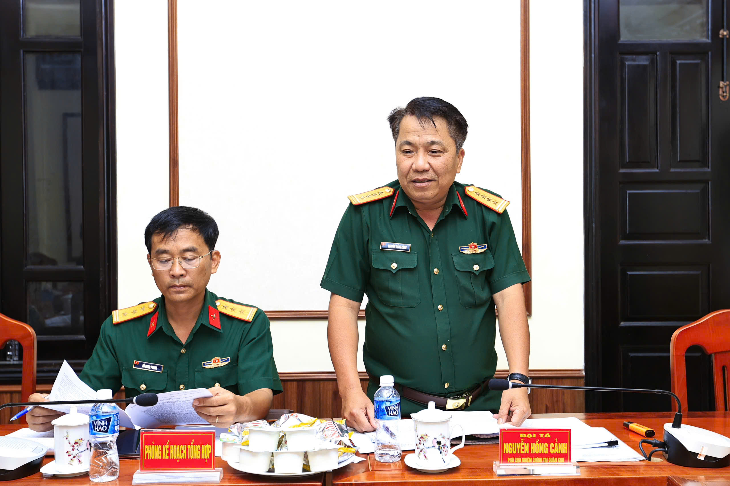 Đại tá Nguyễn Hồng Cảnh phát biểu tại hội nghị. Ảnh: Lê Trầm.