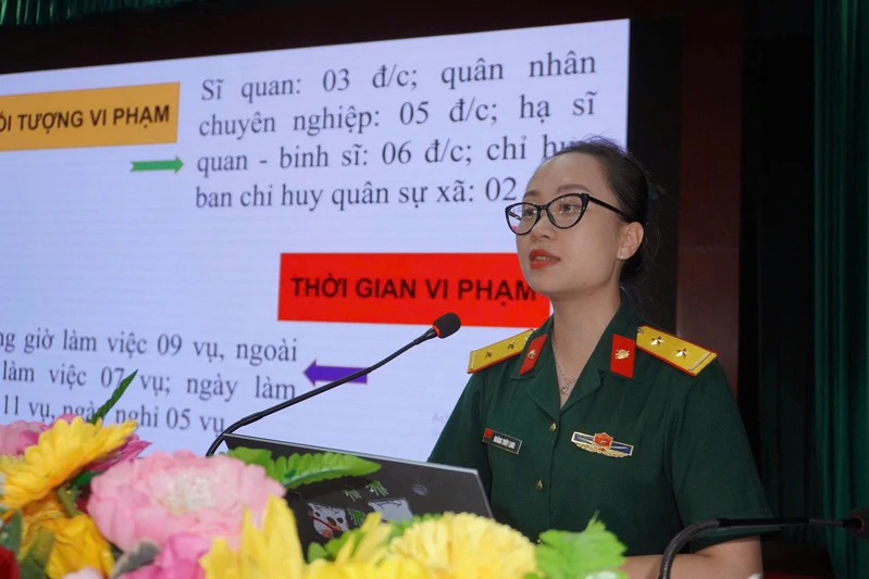 Nội dung tuyên truyền được xây dựng toàn diện, thiết thực, bám sát yêu cầu thực tiễn trong lực lượng vũ trang, tập trung vào 06 chuyên đề trọng tâm. Trong đó, chuyên đề về Chương XXV Bộ luật Hình sự giúp chiến sĩ nhận diện rõ các hành vi vi phạm liên quan đến nghĩa vụ, trách nhiệm của quân nhân; chuyên đề về Thông tư số 143/2023/TT-BQP cung cấp những quy định quan trọng trong quản lý, giáo dục và chấp hành kỷ luật trong Quân đội. Bên cạnh đó, các nội dung về phòng, chống vi phạm kỷ luật, phòng ngừa tệ nạn xã hội, đặc biệt là các hành vi liên quan đến tín dụng đen, cờ bạc, ma túy được phân tích cụ thể, gắn với tình hình thực tế, qua đó giúp bộ đội nâng cao cảnh giác, chủ động phòng tránh.