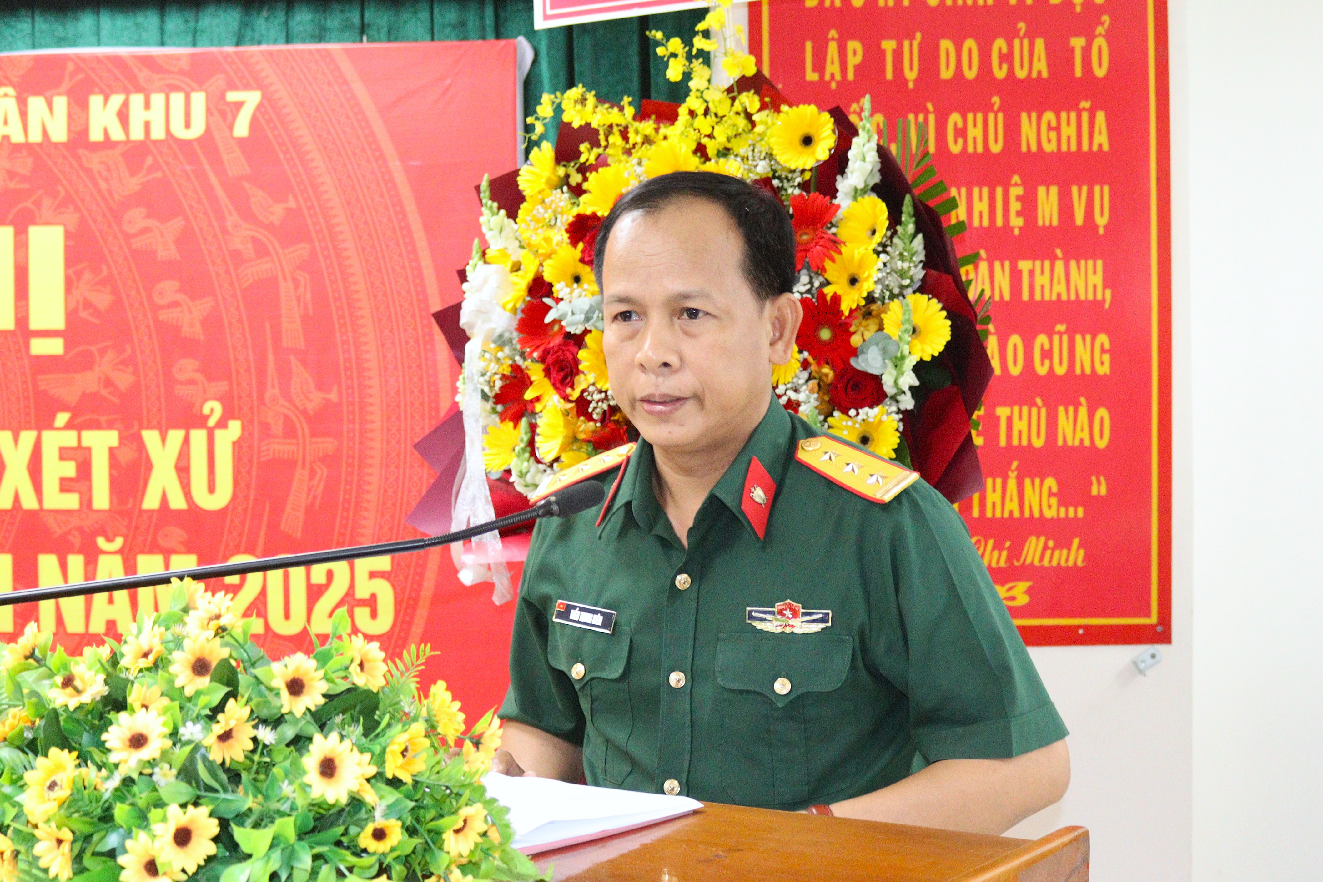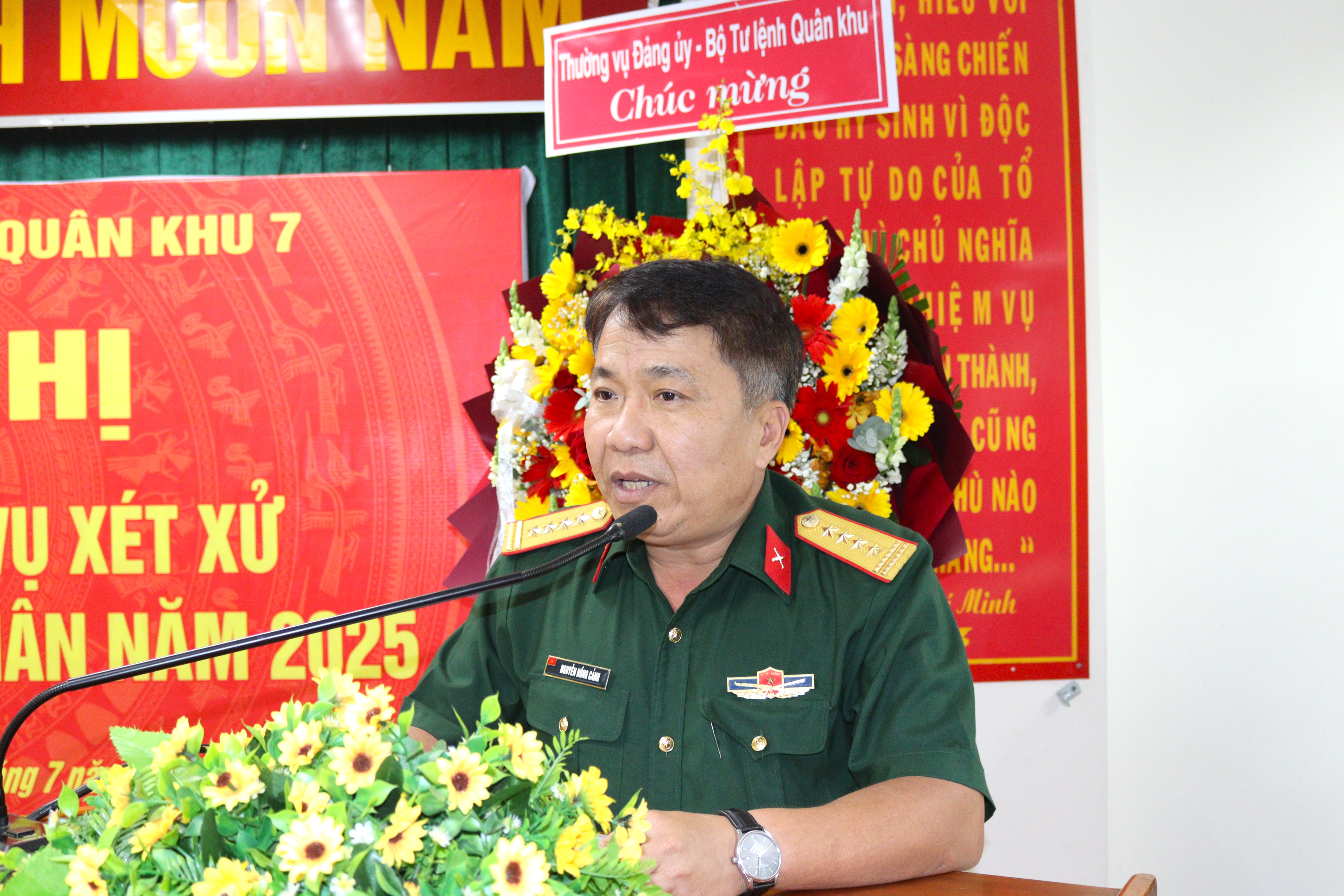 Đại tá Nguyễn Hồng Cảnh, Phó Chủ nhiệm Chính trị Quân khu phát biểu chỉ đạo lớp tập huấn.