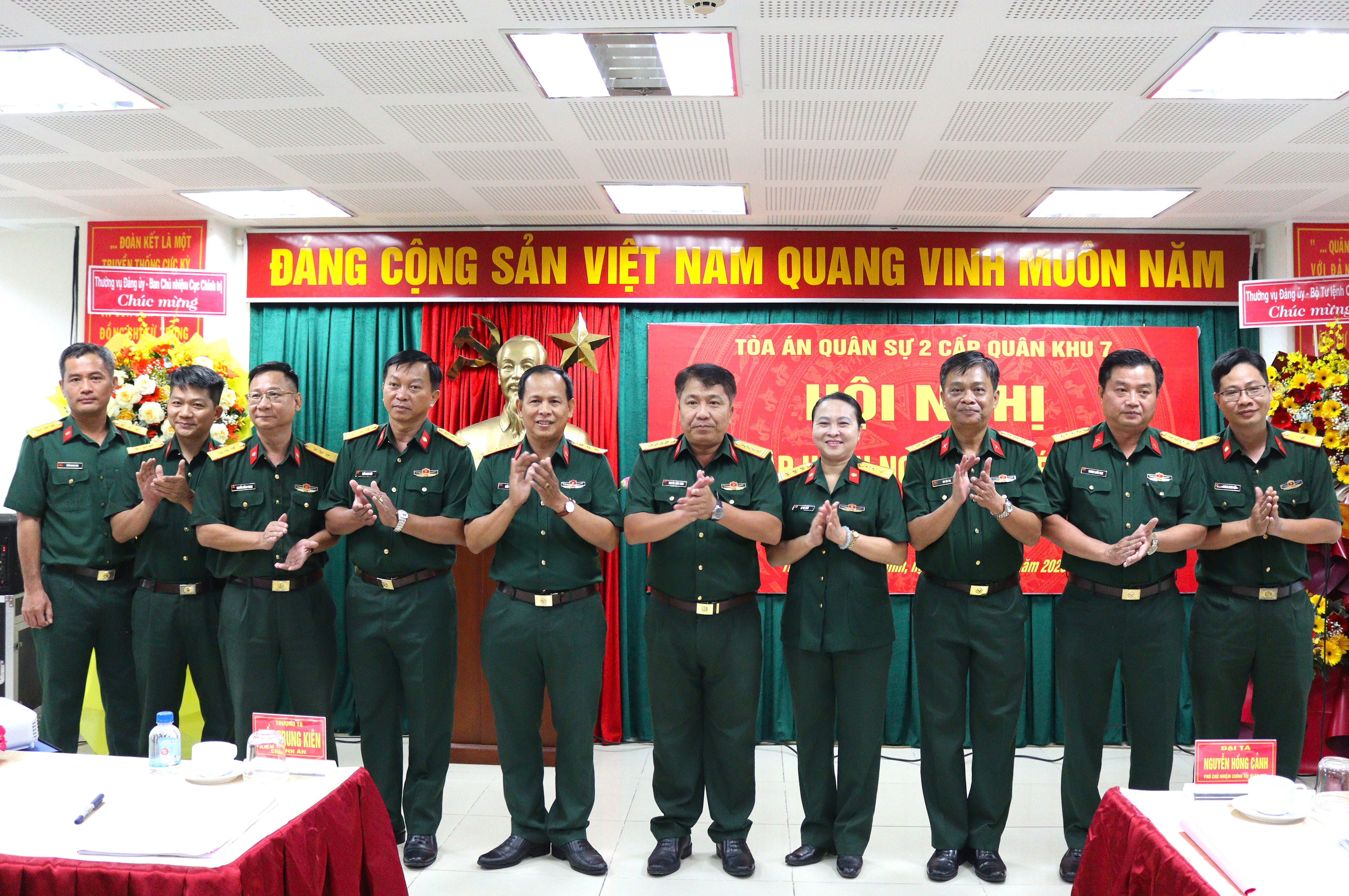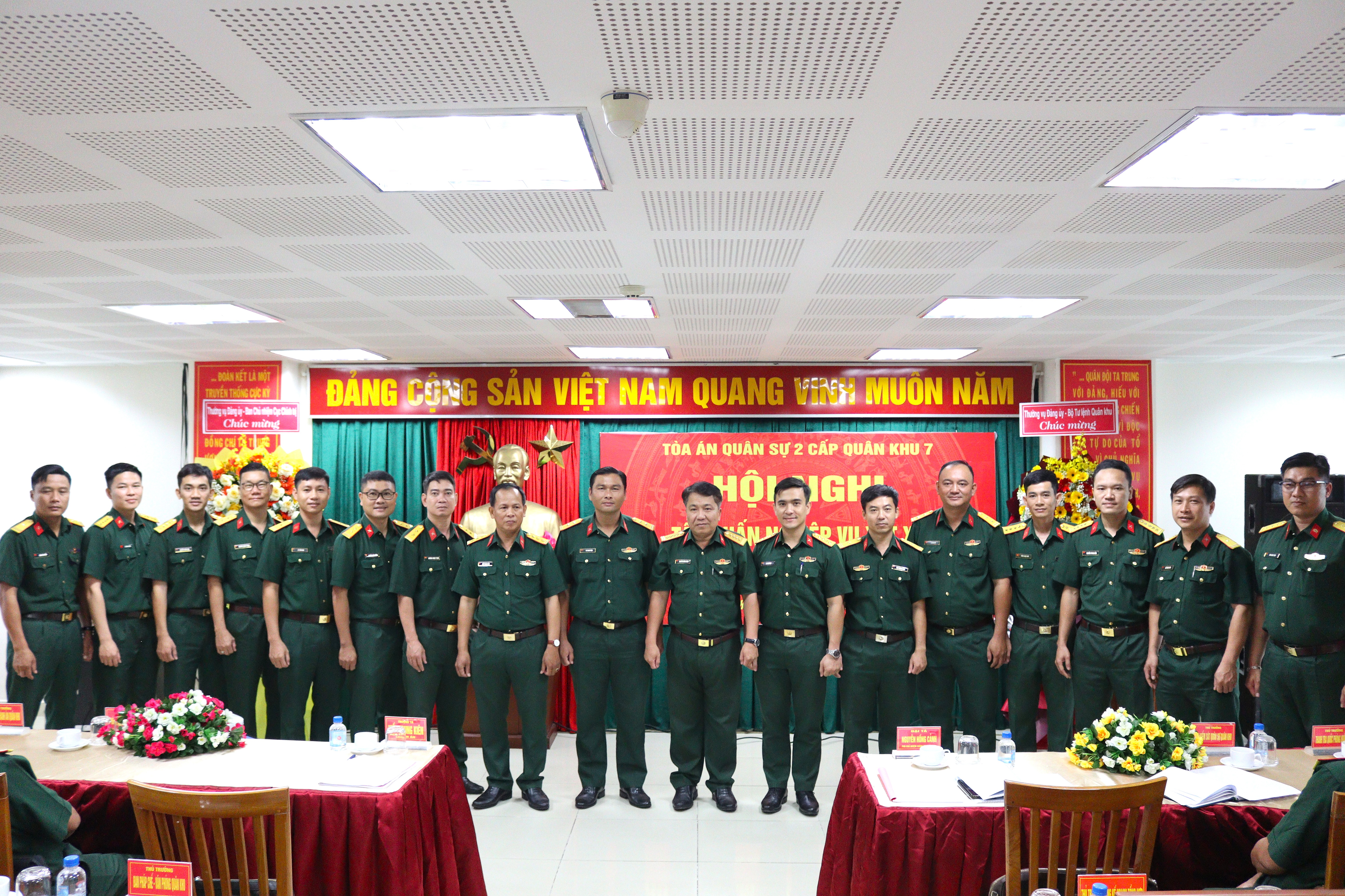 Thủ trưởng Cục Chính trị Quân khu và đại biểu chụp ảnh lưu niệm.