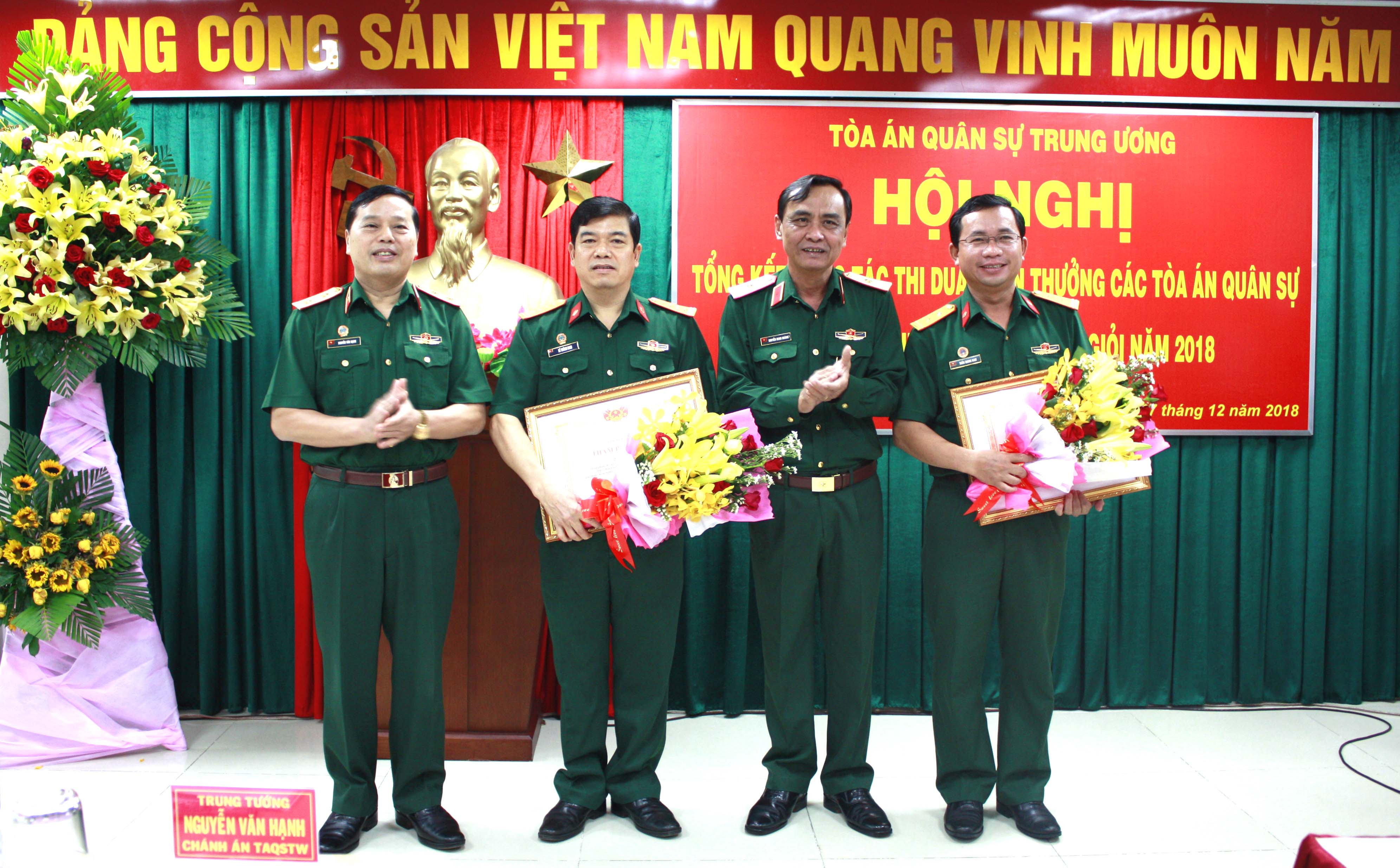 Tại hội nghị, Trung tướng Nguyễn Văn Hạnh, Phó Chánh án Tòa án nhân dân tối cao, Chánh án Tòa án quân sự Trung ương trao danh hiệu Thẩm phán giỏi năm 2018 cho 2 đồng chí Lê Thành Nam, Thẩm phán cao cấp, Tòa án quân sự Quân khu và đồng chí Trần Giang Nam, Thẩm phán trung cấp, Chánh án Tòa án quân sự Khu vực 2 Quân khu 7 đã có thành tích xuất sắc trong công tác xét xử góp phần vào sự nghiệp xây dựng và phát triển của Tòa án nhân dân.