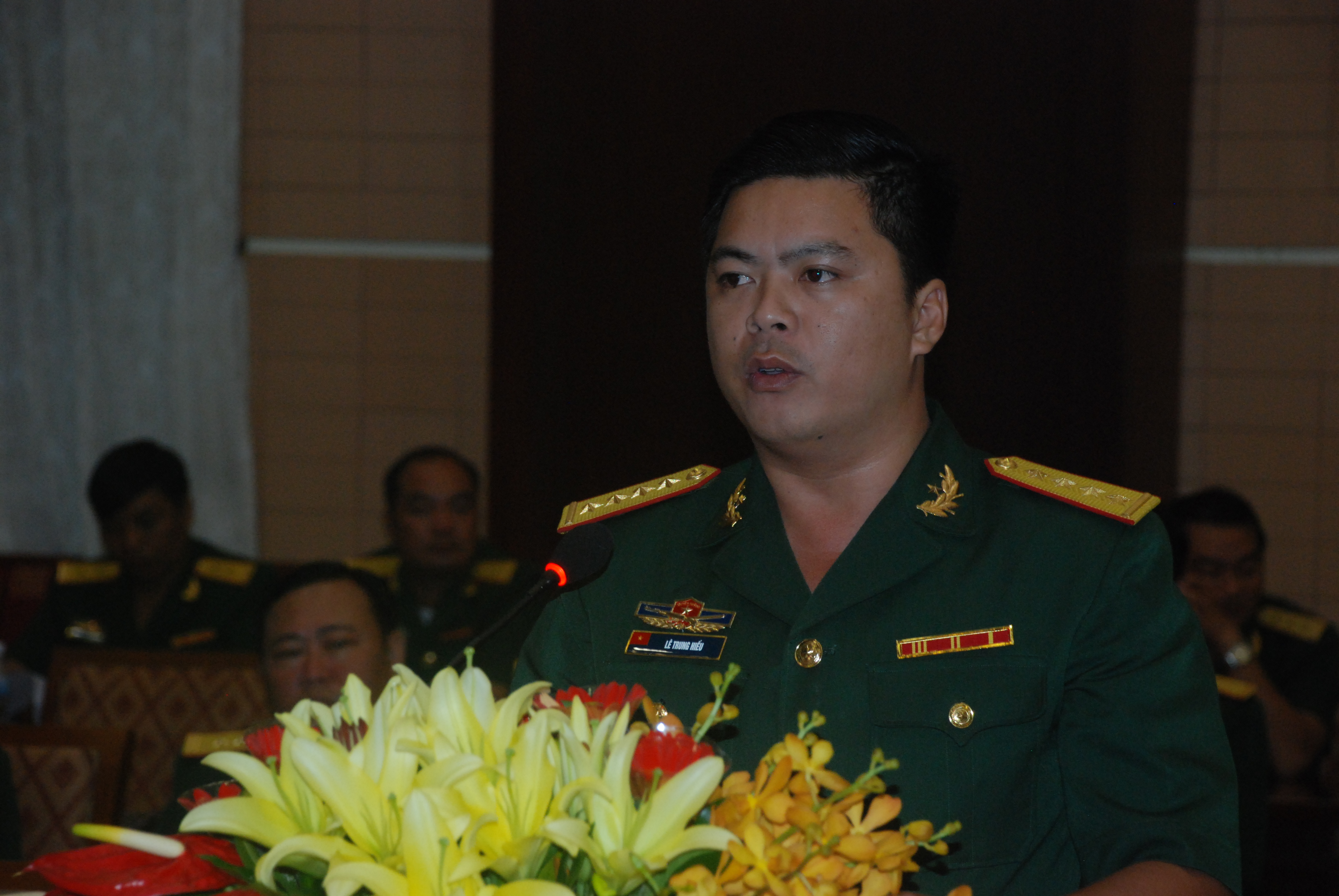 Đại úy Lê Trung Hiếu, sĩ quan trẻ Trung đoàn Gia Định phát biểu