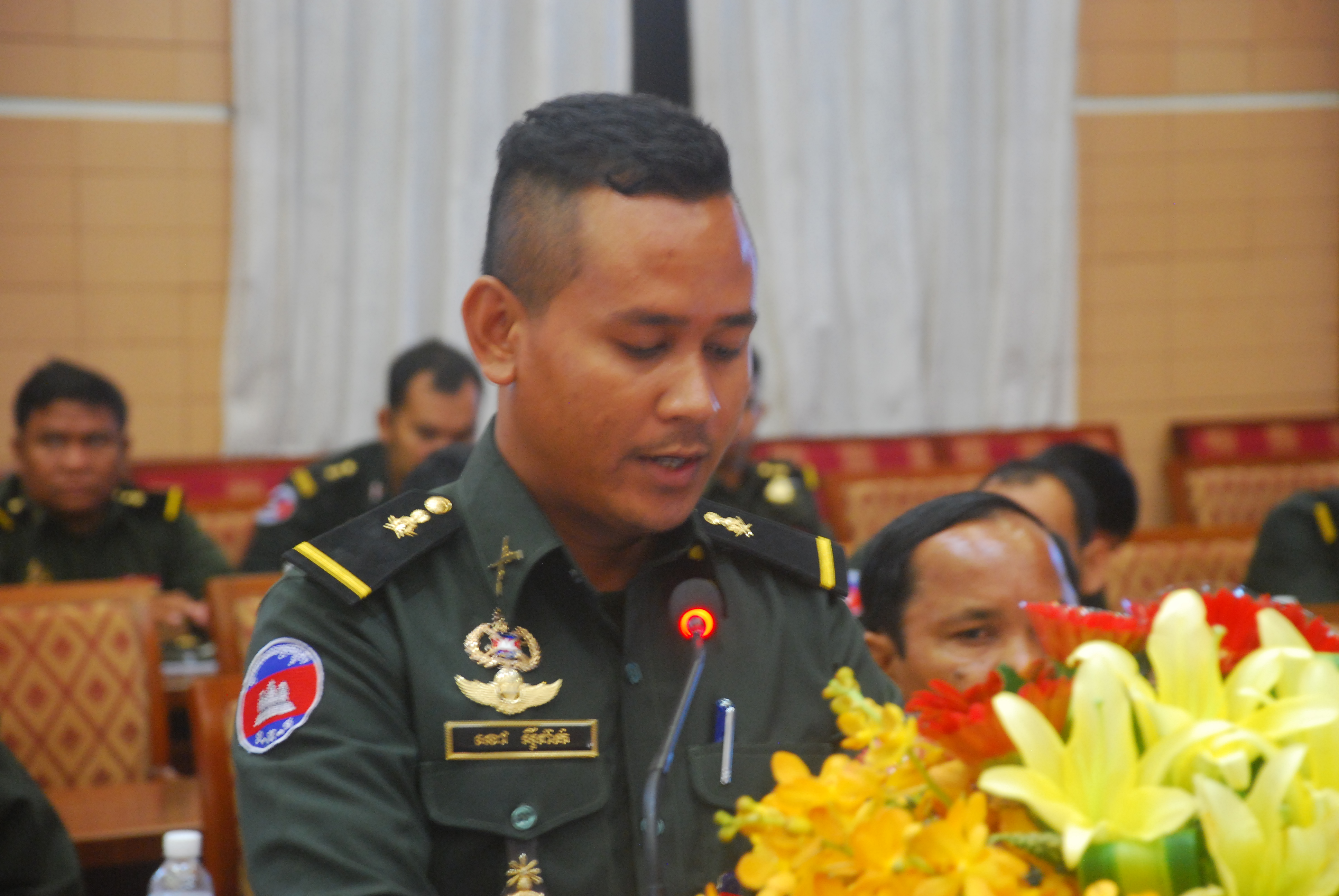 Thiếu úy Mou SaVy, sĩ quan trẻ BTL Quân khu Đặc biệt phát biểu