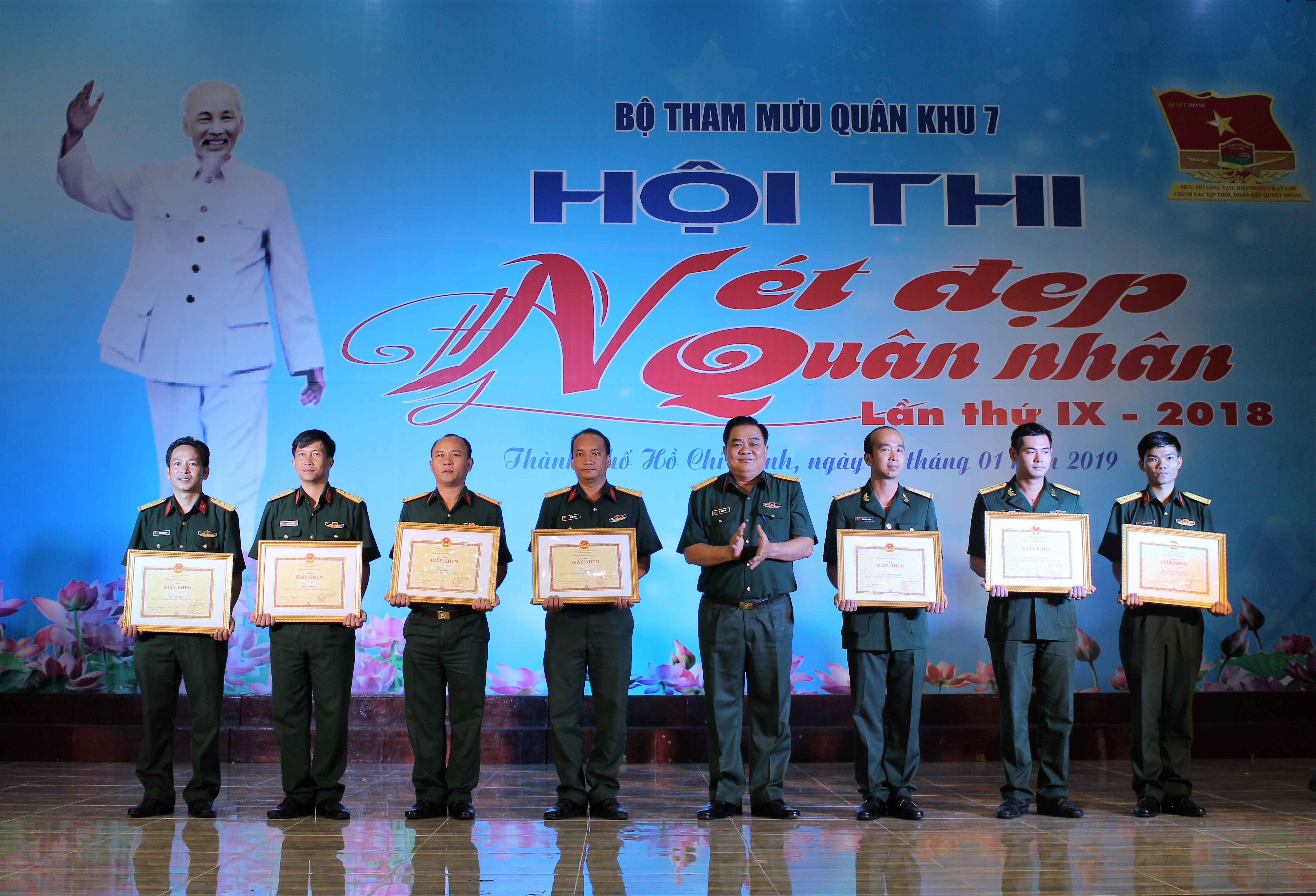 (QK7 Online) - Bộ Tham mưu Quân khu 7 vừa tổ chức thành công hội thi "Nét đẹp quân nhân" lần thứ IX. Đây là một hoạt động thường xuyên của Bộ Tham mưu Quân khu 7 nhằm tạo không khí thi đua sôi nổi, thiết thực, xây dựng môi trường văn hóa lành mạnh trong các cơ quan, đơn vị. Hội thi còn là dịp tôn vinh nét đẹp toàn diện của mỗi quân nhân về trí tuệ, sự sáng tạo và sự vận dụng kiến thức vào thực tiễn, giải quyết những vấn đề phát sinh trong học tập, công tác, và thực hiện nhiệm vụ được giao.