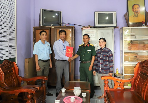 Vợ chồng Trung tá Điểu Vôi bàn giao giấy tờ sử dụng đất cho nhà trường.