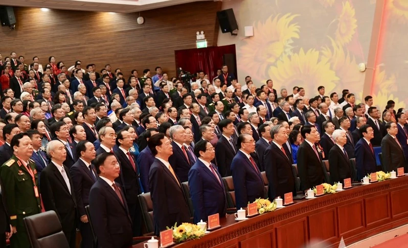 Tham dự có các đồng chí Ủy viên Bộ Chính trị, nguyên Ủy viên Bộ Chính trị, Bí thư Trung ương Đảng, Ủy viên Trung ương Đảng, nguyên Ủy viên Trung ương Đảng, lãnh đạo, nguyên lãnh đạo Đảng, Nhà nước, các ban, bộ, ngành Trung ương và địa phương; các đồng chí lão thành cách mạng, Mẹ Việt Nam Anh hùng, Anh hùng LLVT nhân dân, Anh hùng Lao động.