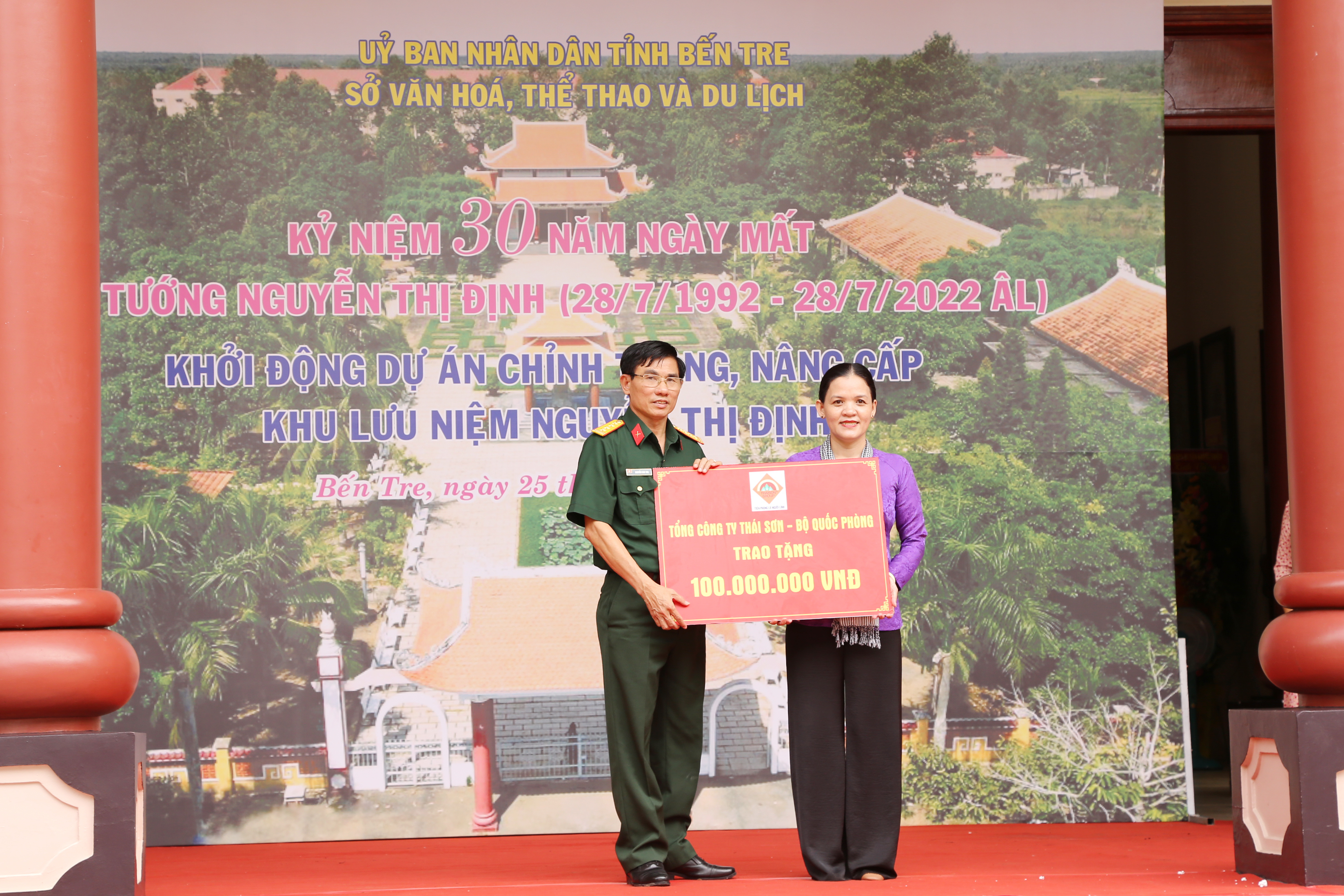 Tổng công ty Thái Sơn ủng hộ 100 triệu đồng chỉnh trang khu lưu niệm Nguyễn Thị Định.
