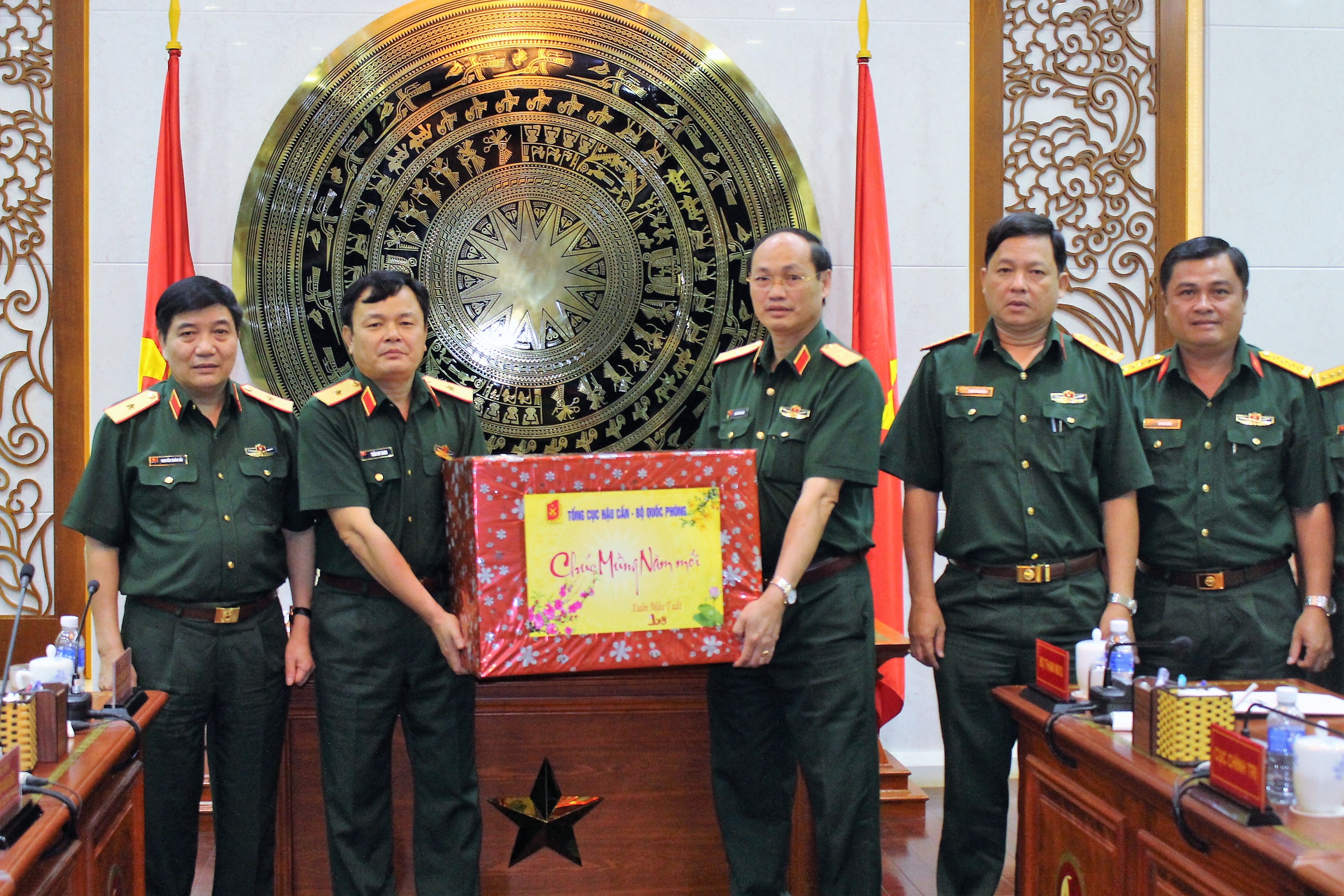 Thiếu tướng Trần Duy Giang tặng quà và chúc mừng năm mới Bộ Tư lệnh Quân khu 7.