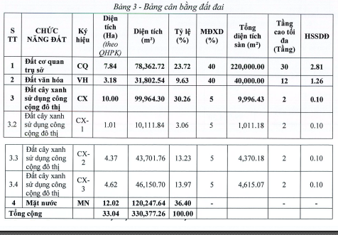 Các hạng mục chính trong quy hoạch