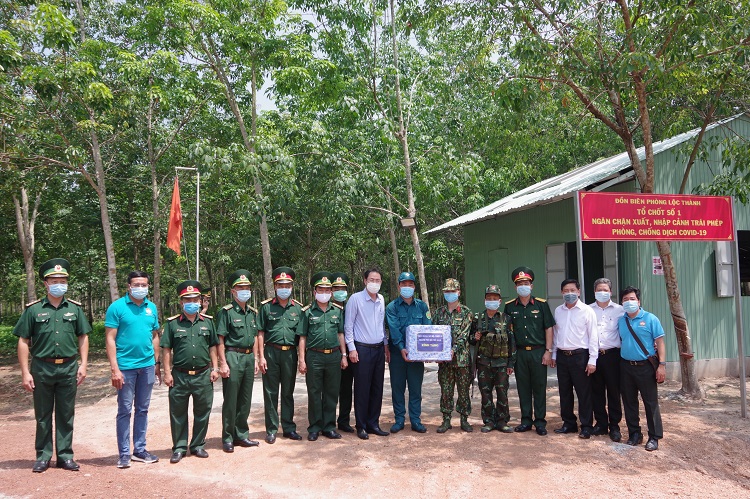 Đoàn công tác đã đến thăm, động viên cán bộ, chiến sĩ đang thực hiện nhiệm vụ kiểm soát, ngăn chặn dịch Covid-19 tại Đồn Biên phòng Cửa khẩu Lộc Thịnh và các tổ, chốt phòng chống dịch thuộc Đồn Biên phòng Lộc Thành (huyện Lộc Ninh).